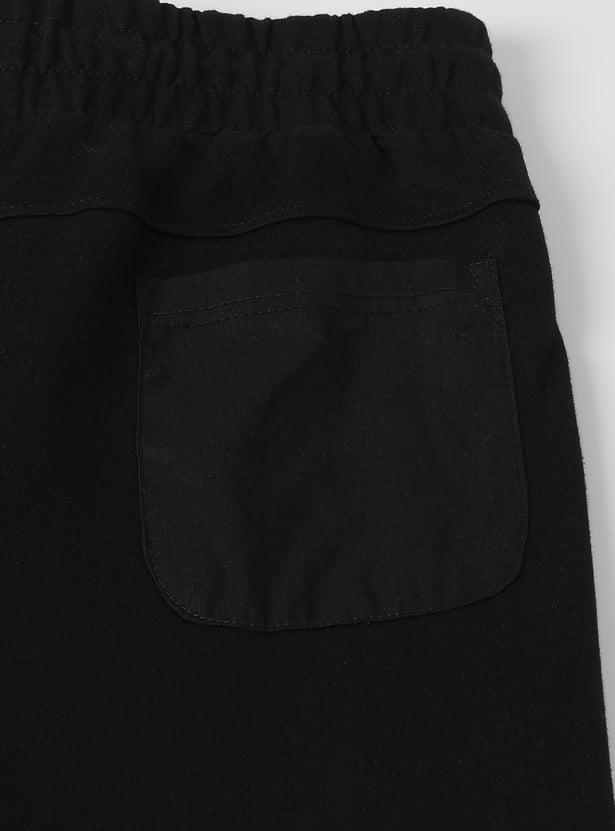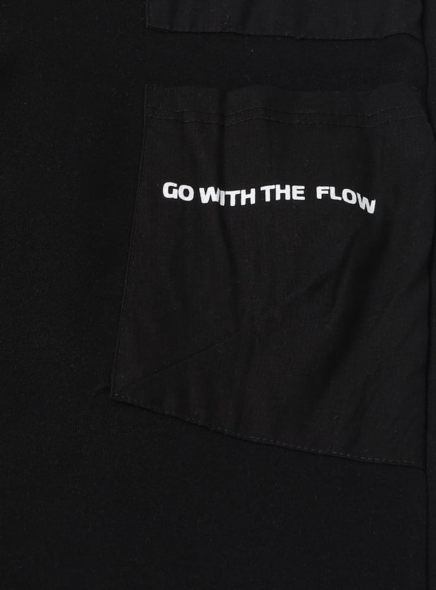 These boys’ printed full-length joggers blend comfort and utility with a trendy edge. Featuring an elasticated waist with a cord lock drawstring for a secure fit, side and back pockets for convenience, and elasticated ankles for a snug finish, they’re perfect for all-day wear.