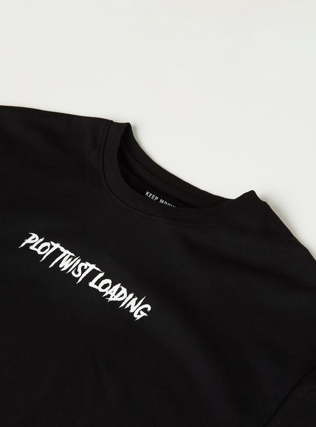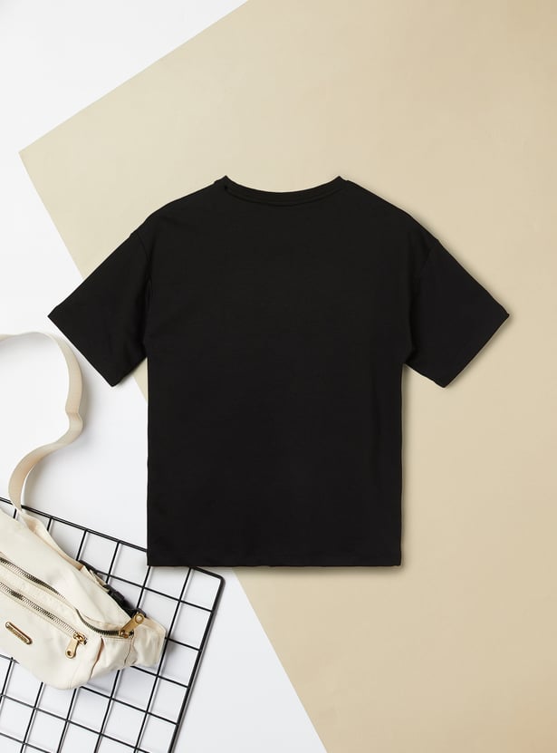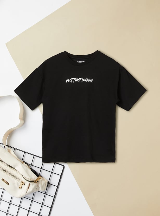 Easygoing and stylish, this printed oversized T-shirt features a crew neckline and half sleeves. Made from soft, breathable fabric, it combines everyday comfort with a trendy printed design that adds personality to your casual wardrobe.