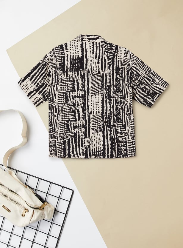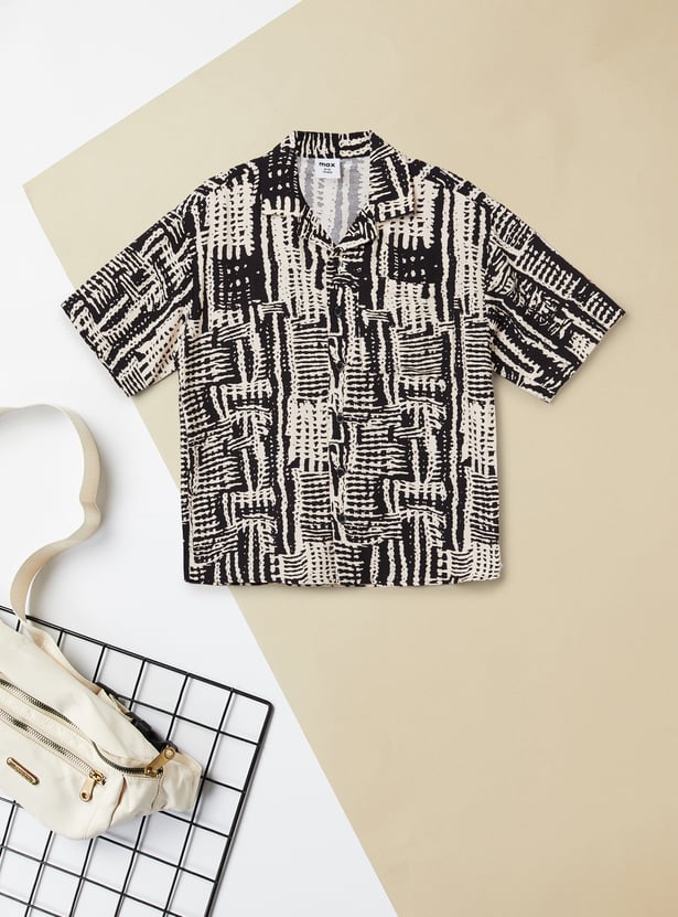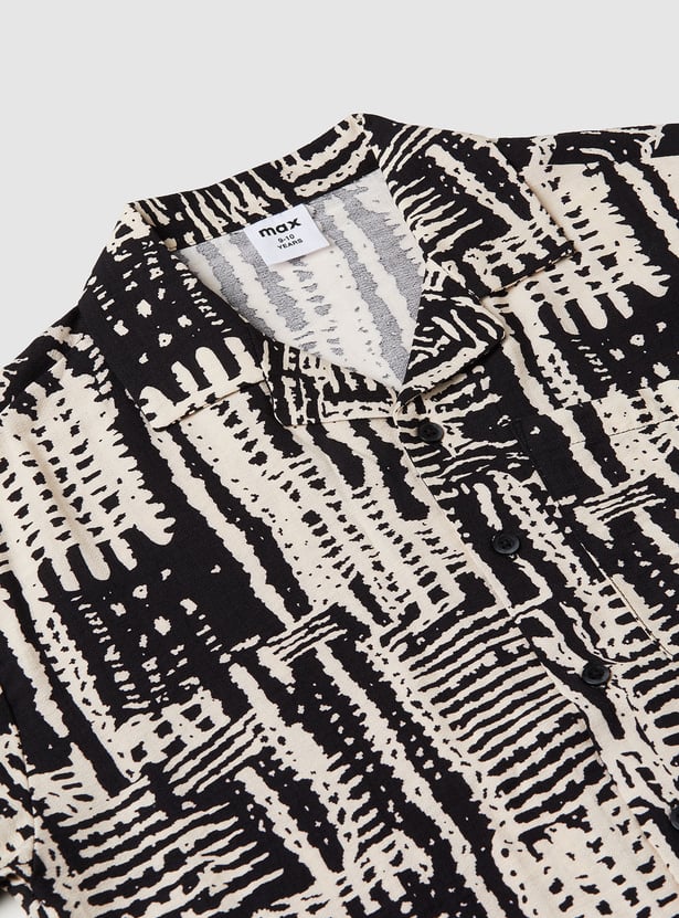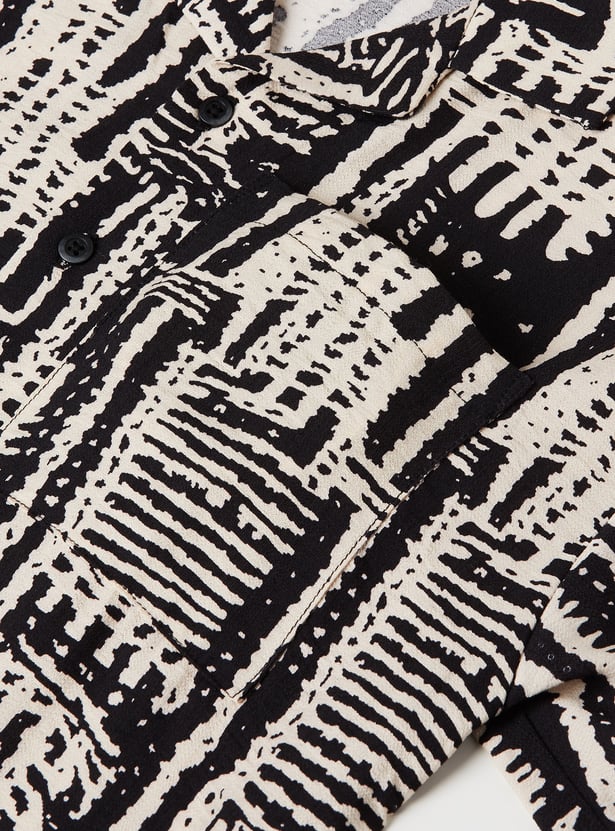 Bring vacation vibes to his wardrobe with this printed resort shirt, styled with a relaxed resort collar and half sleeves for breezy comfort. The button placket adds classic structure, while the patch pocket offers everyday utility—perfect for summer outings, playdates, or casual celebrations.