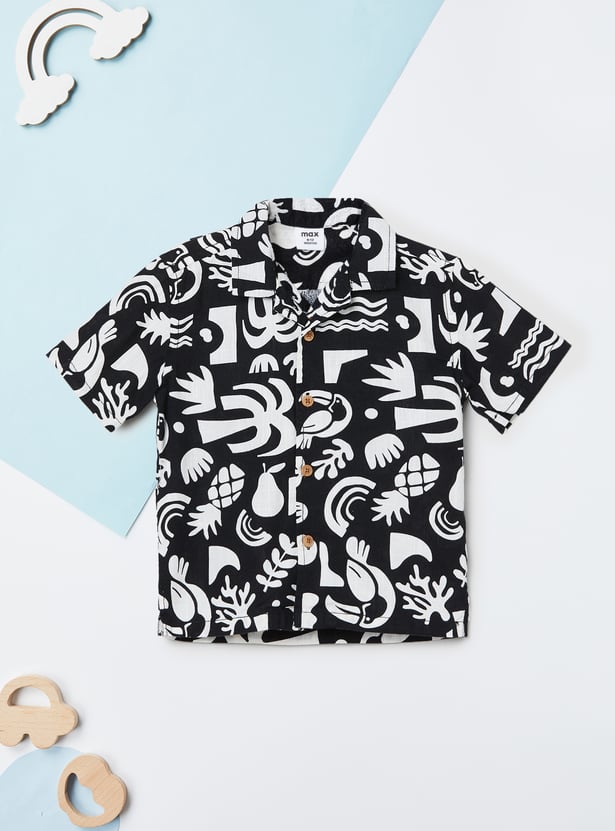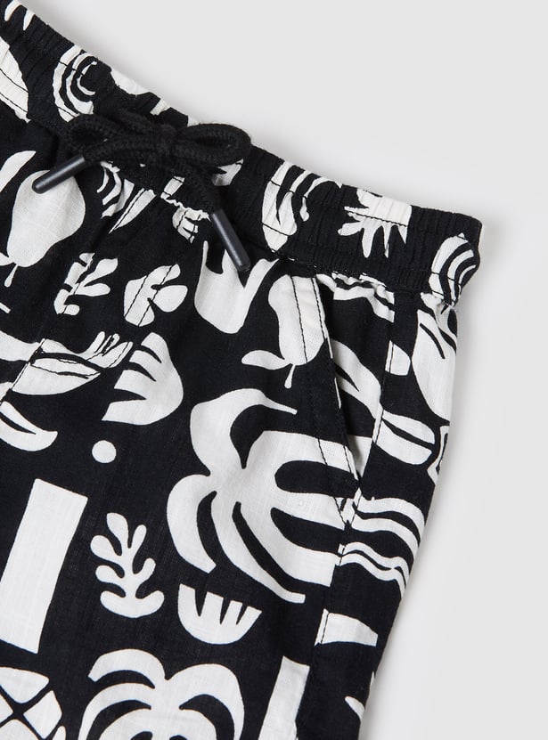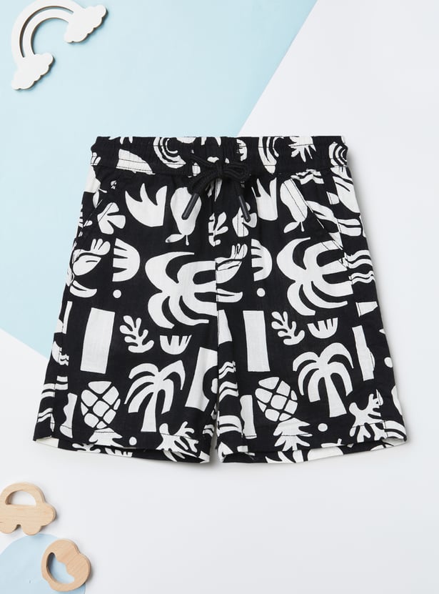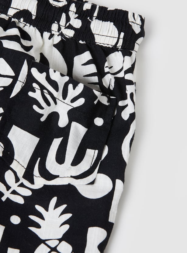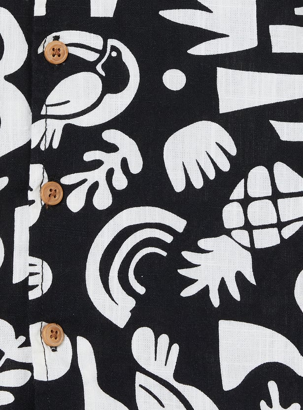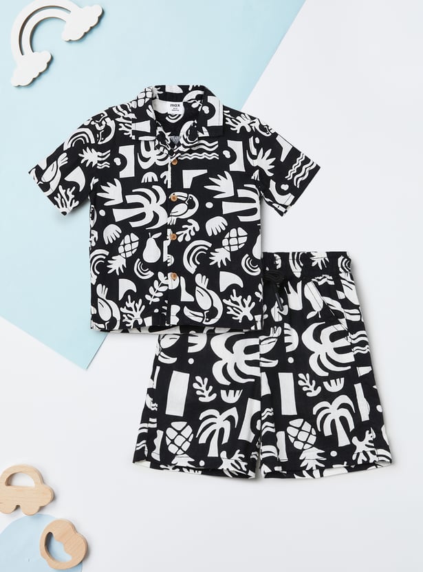 Step into effortless style with this printed shorts set. The shirt features a resort collar, button placket, and half sleeves for a breezy, relaxed vibe. Paired with shorts designed with a drawstring closure and functional pockets, this set blends comfort with casual sophistication.