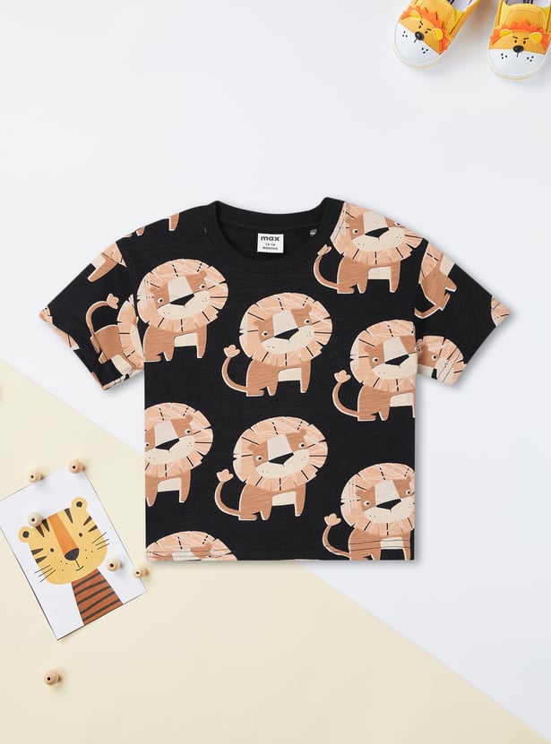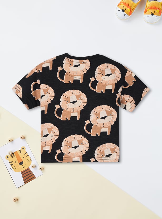 Unleash your wild side with this adorable printed T-shirt! Featuring an all-over cute lion print, a classic crew neck, and comfy half sleeves, it’s perfect for adding a playful touch to your casual outfits.