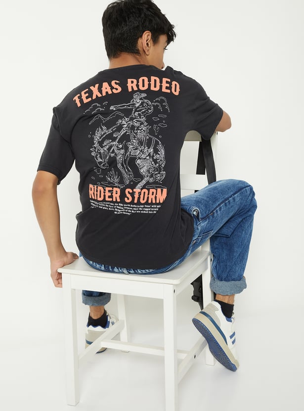 Add a pop of personality to your casual wardrobe with this printed T-shirt, featuring a classic crew neck and comfortable half sleeves. Soft and breathable, it’s perfect for everyday wear.