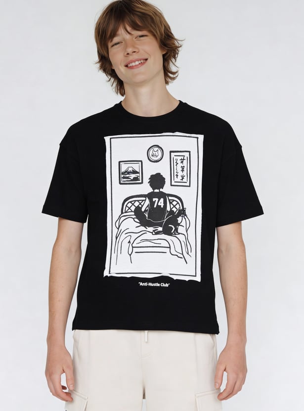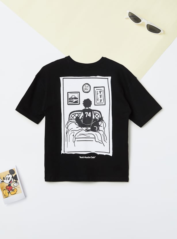 Casual comfort meets everyday style with this printed oversized T-shirt. Featuring a classic crew neck, back print, and half sleeves, it offers a relaxed fit with a touch of personality from the print.
