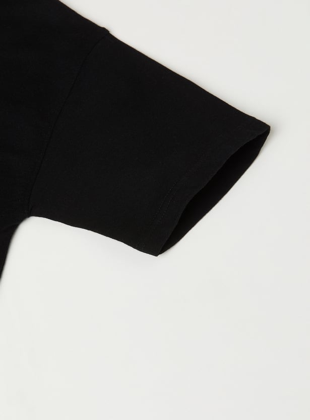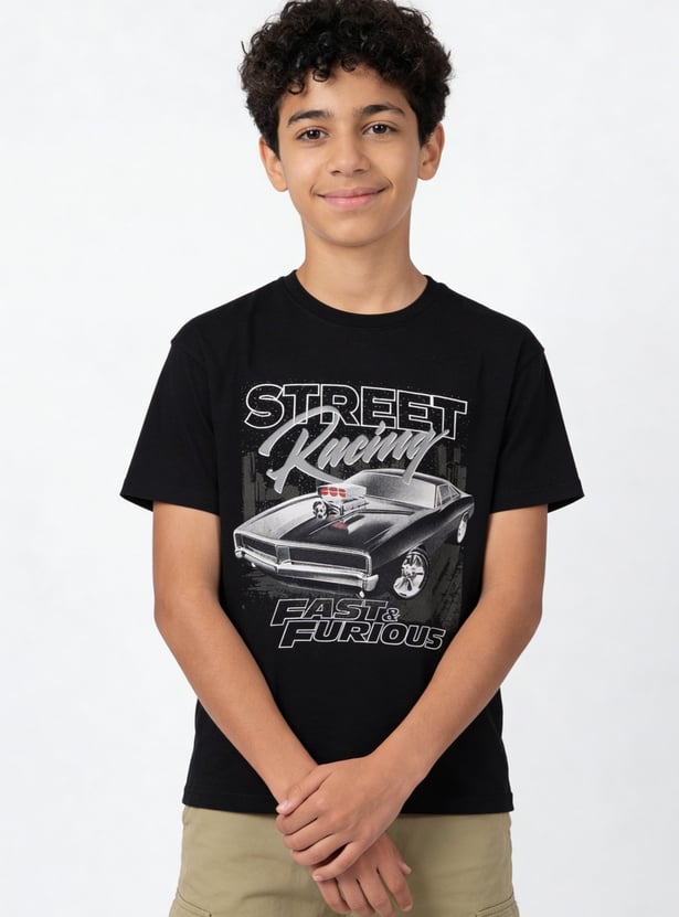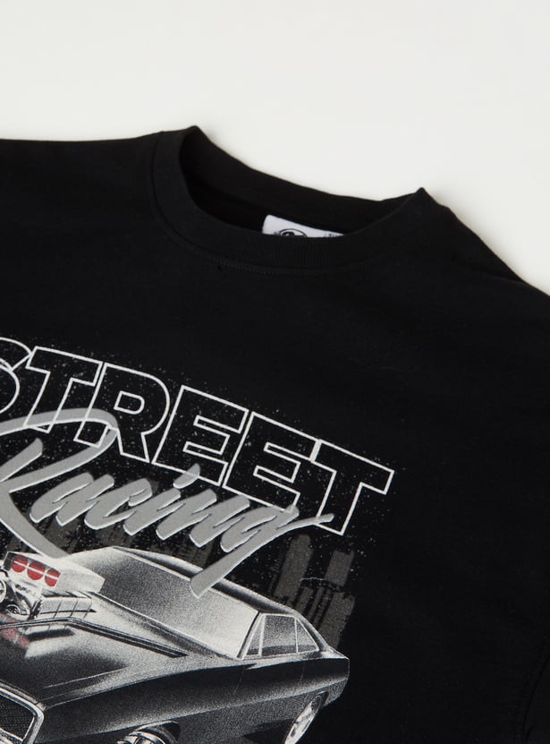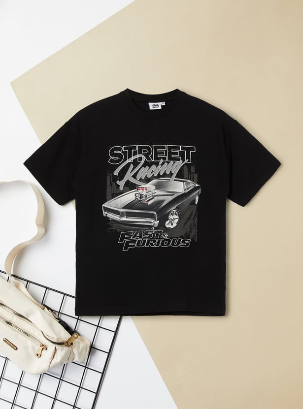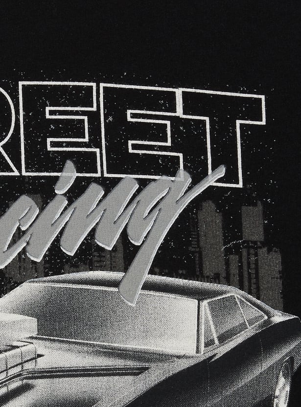 Casual and versatile, this printed T-shirt features a classic crew neckline and half sleeves. The soft fabric and bold print make it a comfortable yet stylish choice for everyday wear.