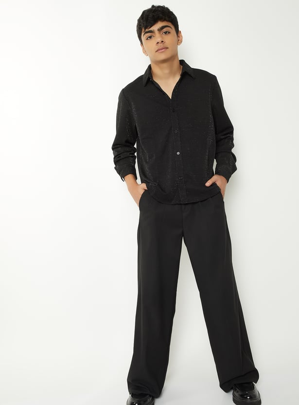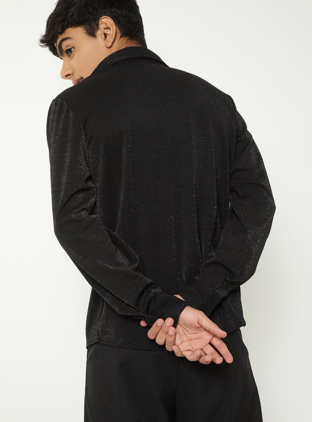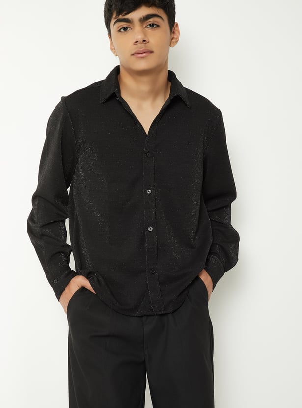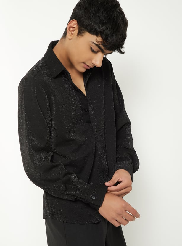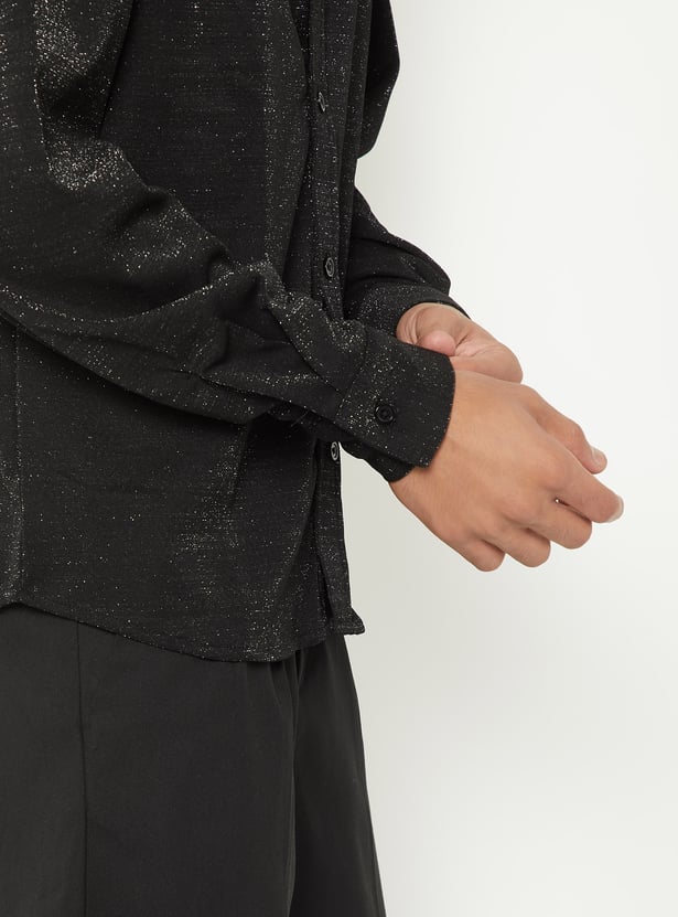 Bring a refined charm to your wardrobe with this shimmer regular fit shirt. Designed with a spread collar and a button closure, it offers a polished appeal, while the full sleeves with button cuffs add a classic finish.