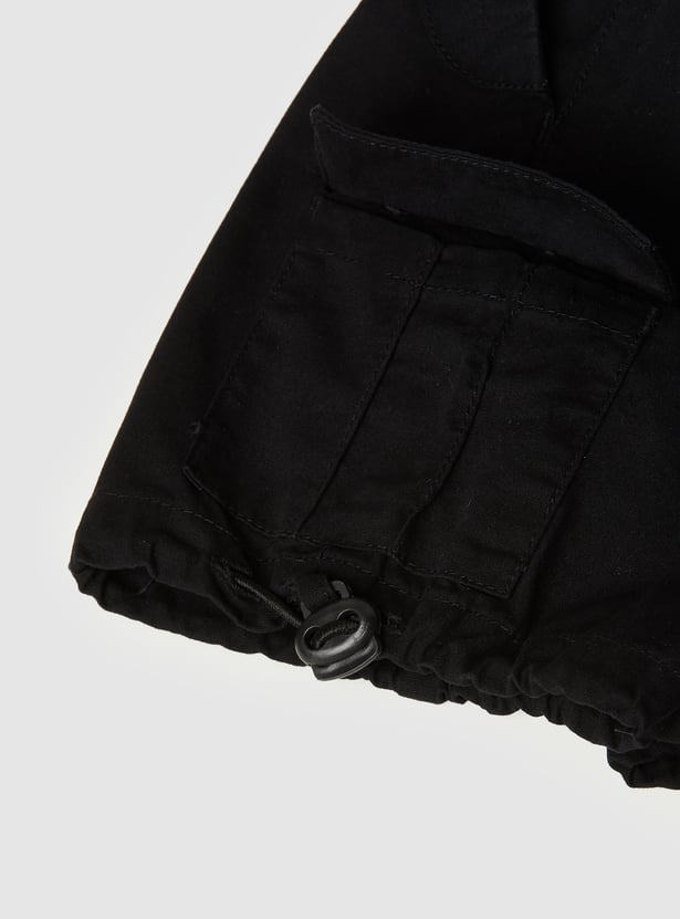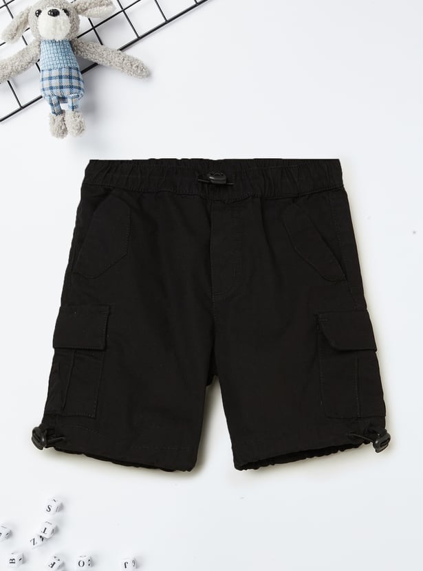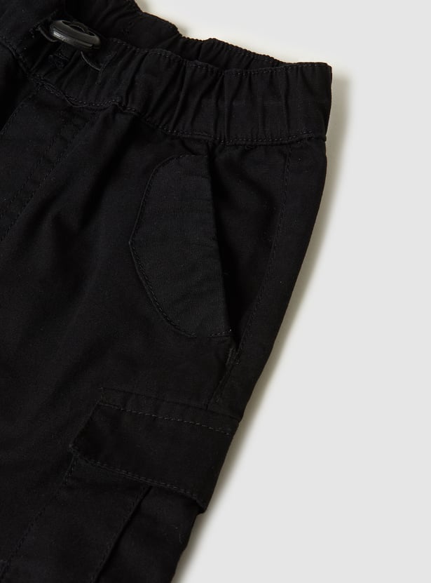 These solid cargo shorts are the perfect blend of style and comfort for your little one. Featuring an elasticated waist for an adjustable, secure fit, they offer easy movement and a relaxed feel.