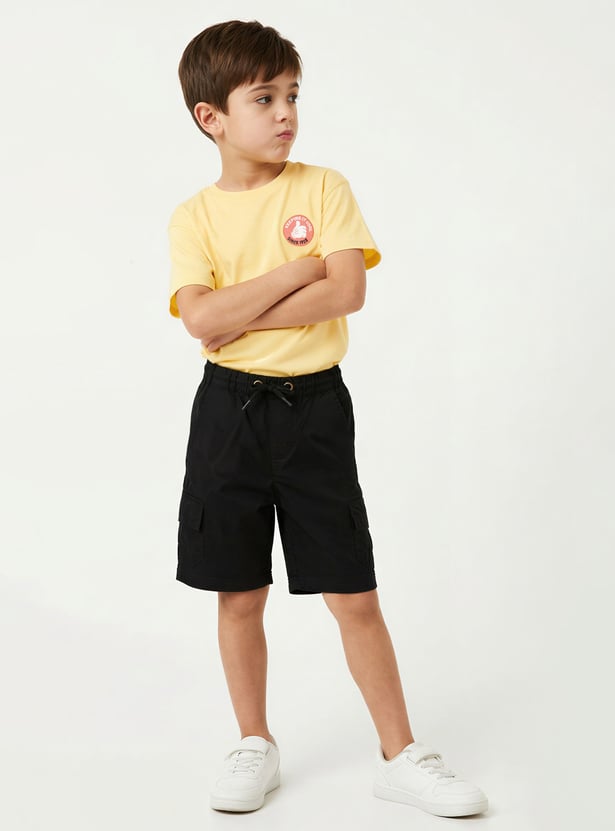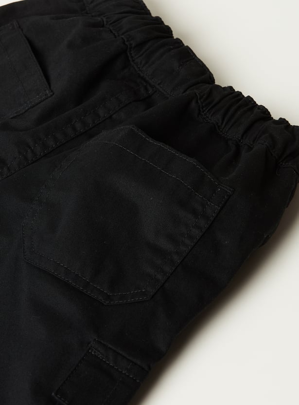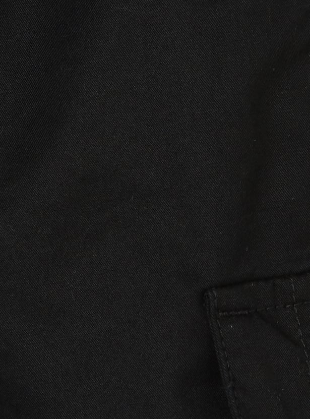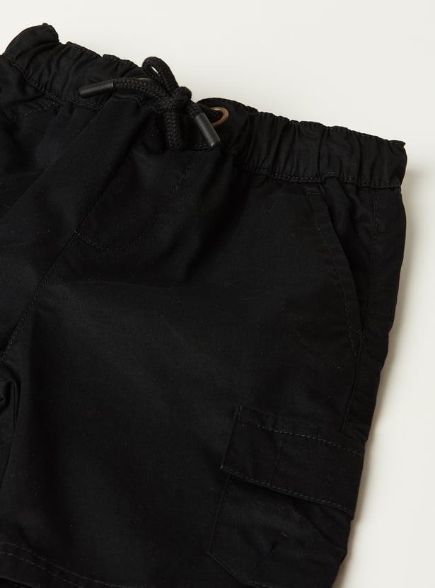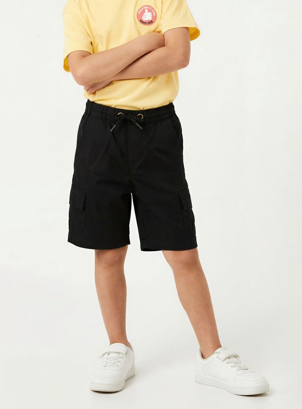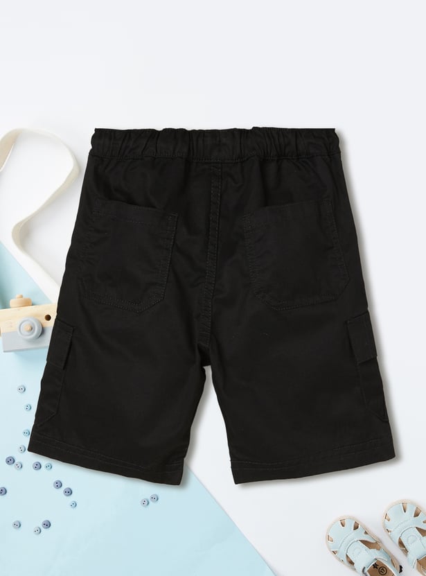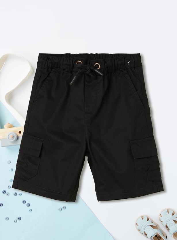 These solid woven cargo shorts are designed in a relaxed fit with a mid-rise, elasticated waist, offering easy movement and all-day comfort. The clean, minimal silhouette with side pockets makes them a versatile staple for everyday wear and off-duty styling.