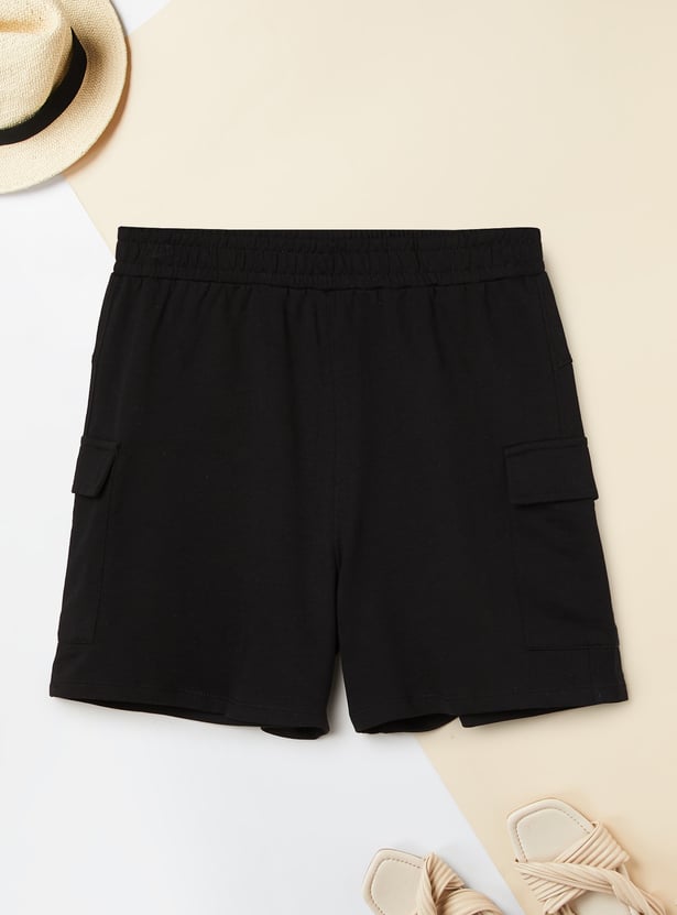 Stay cool and comfortable in these solid cargo shorts, designed with an elasticated waist for a flexible fit and multiple pockets for everyday utility.