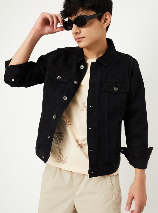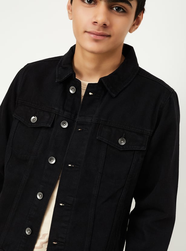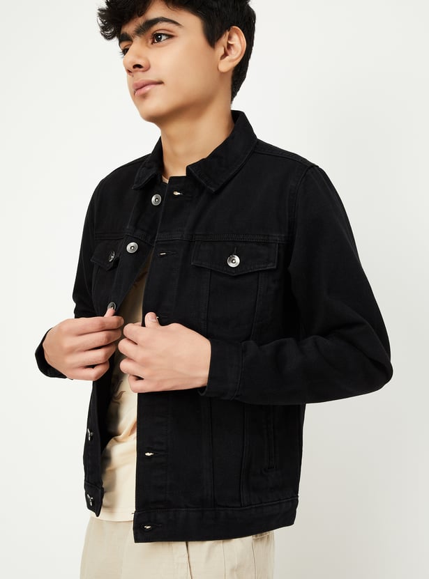 Boys Solid Denim Jacket