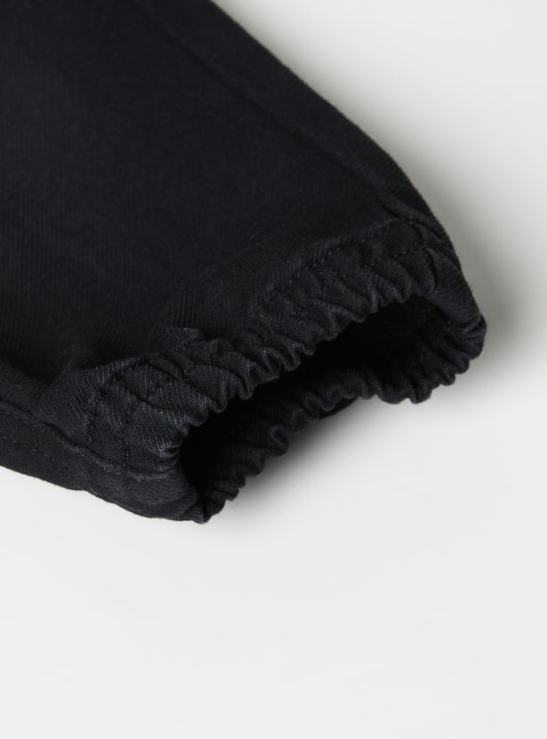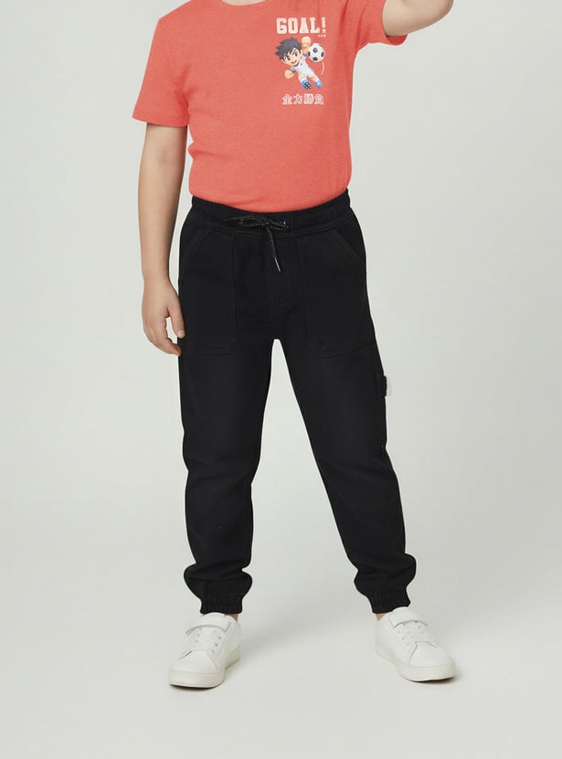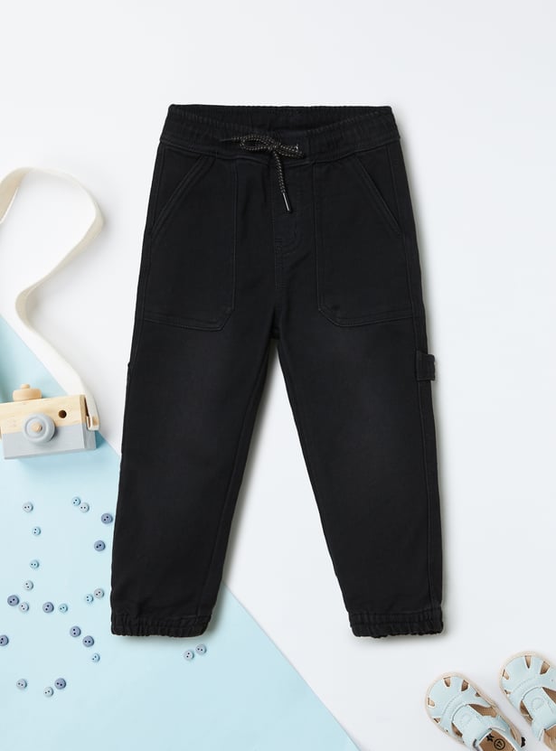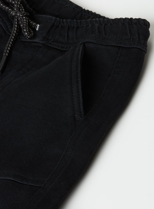 Upgrade your casual essentials with these solid denim joggers. Featuring a drawstring closure for a secure fit and functional pockets for everyday convenience.