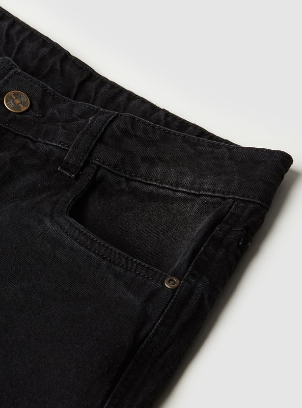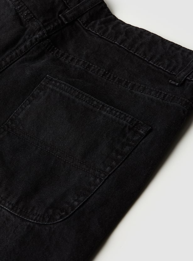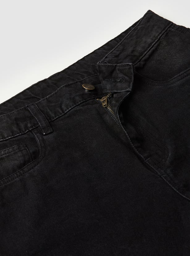 Add a touch of classic style to your denim wardrobe with these solid wide-leg jorts, designed with a flattering, relaxed fit. Featuring a 5-pocket design and button closure, they offer both style and practicality.