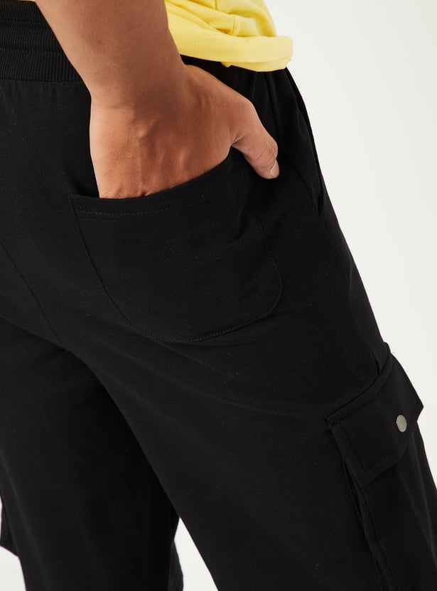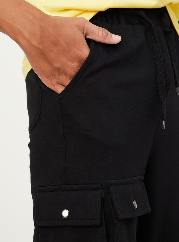 Comfort and practicality go hand-in-hand with this pair of trousers. It has a drawstring waist, cuffed hem, cross pockets, and back patch pockets. This pair includes side cargo pockets for added functionality.