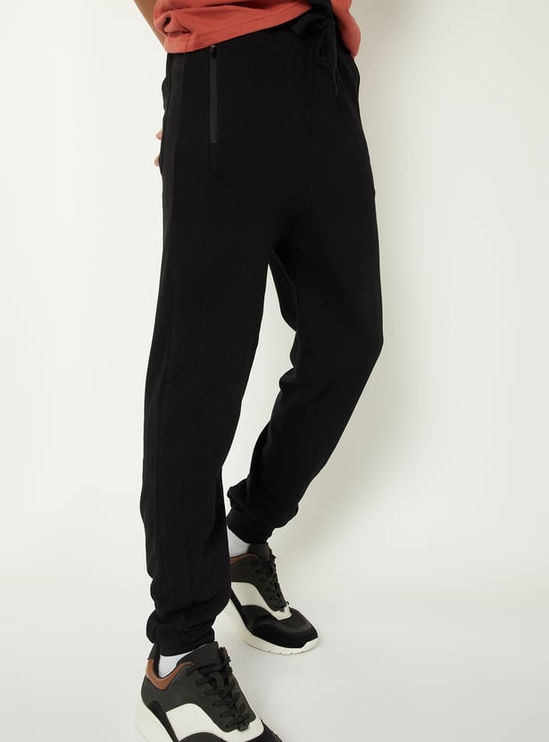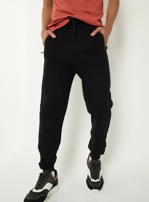 Stay comfortable and on the move in these solid joggers, featuring an elasticated waist for a custom fit and zip pockets to keep your essentials secure.