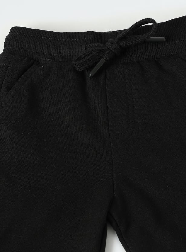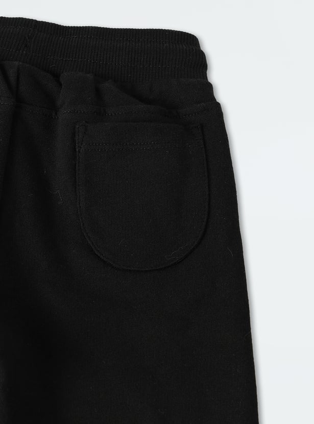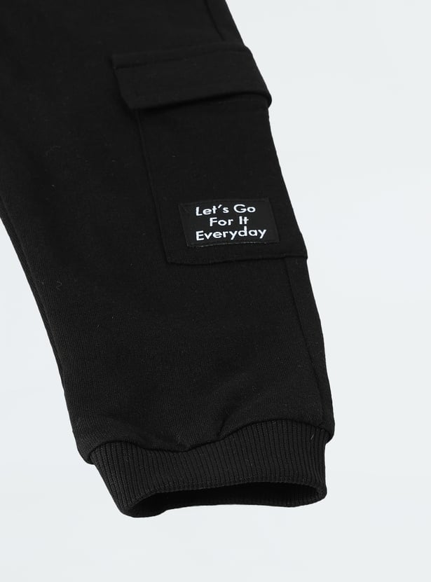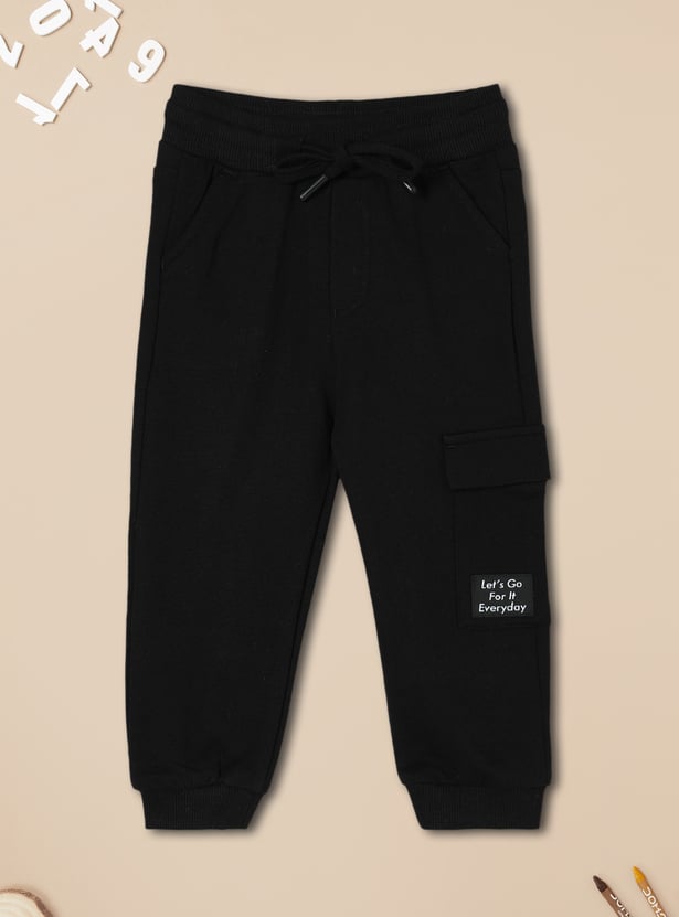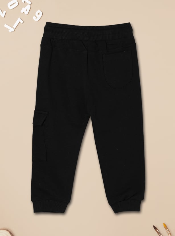 These joggers are perfect for everyday adventures. Featuring a soft fabric for all-day comfort, they come with an elasticated waistband and drawstring closure for a secure fit. The joggers also include functional side pockets and a statement patch detail, adding a cool, sporty touch to his casual wardrobe. Ideal for playtime or lounging.