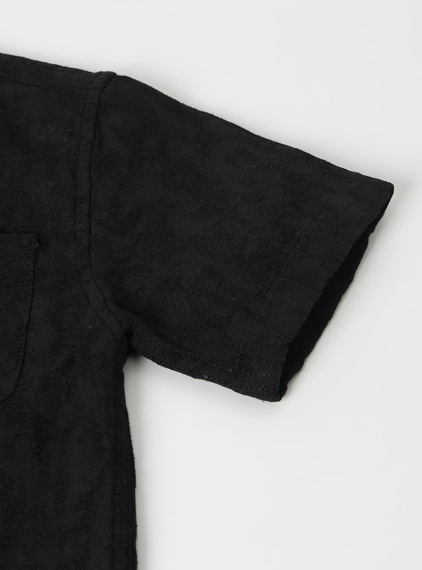 This boys’ solid shirt features a classic resort collar and a button-down front for a smart, versatile look. Designed with half sleeves and a single chest pocket, it’s perfect for both casual and semi-formal occasions.