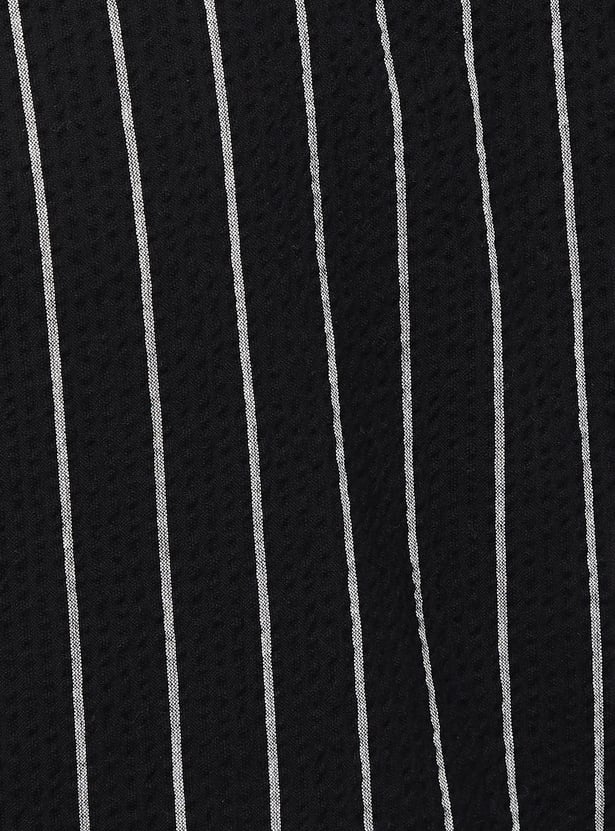 This striped shirt is a fun and stylish choice. With its spread collar, button placket, and full sleeves, it’s perfect for any occasion – whether it’s a casual day out or a fun get-together.