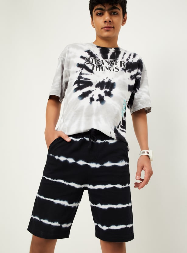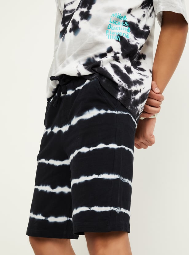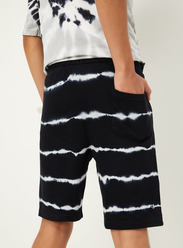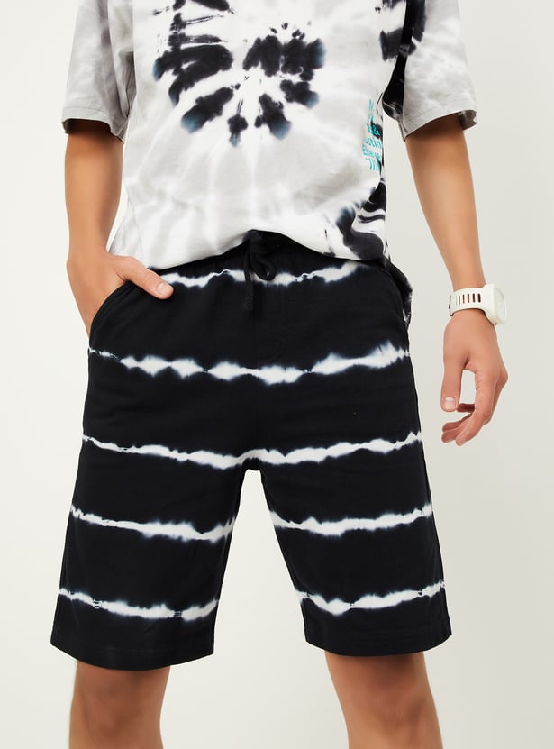 These striped shorts offer a perfect balance of comfort and style with their knee-length cut and vibrant stripes. Featuring a drawstring closure for an adjustable fit and side pockets for added practicality, they are ideal for laid-back days in the sun.