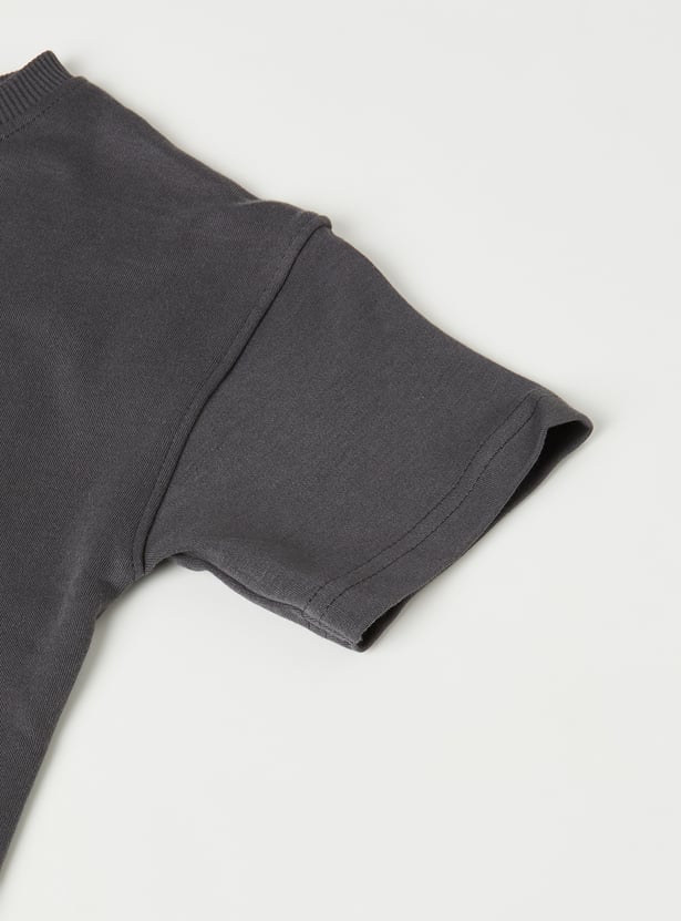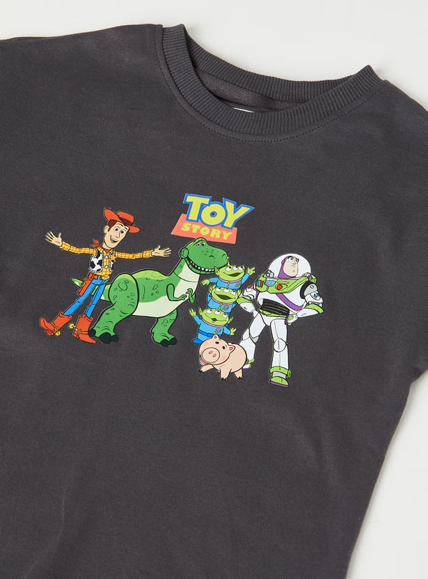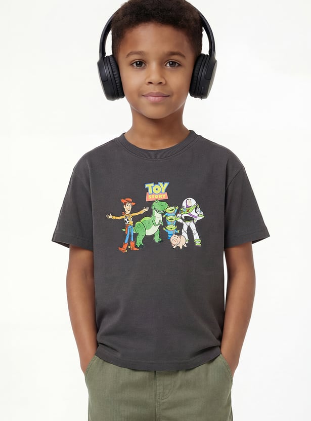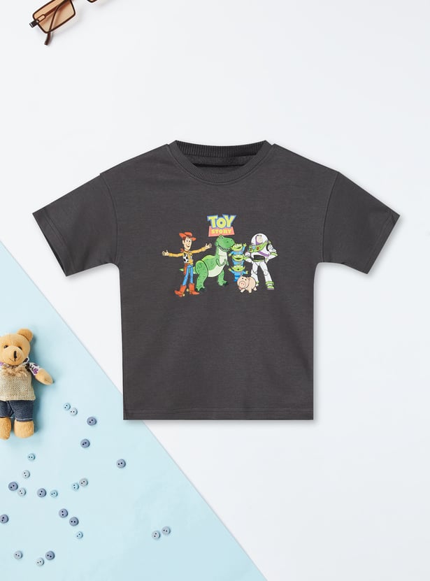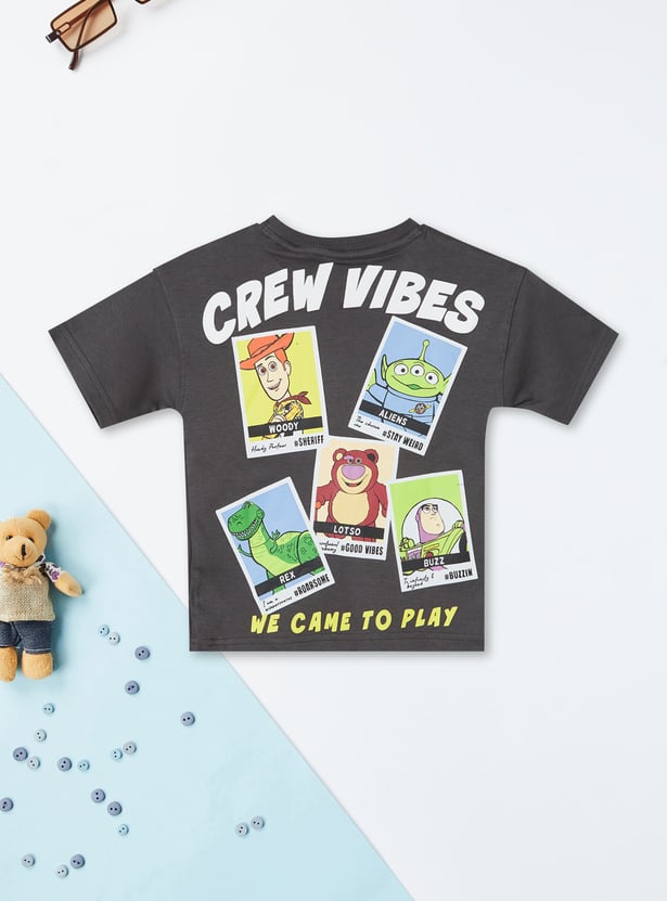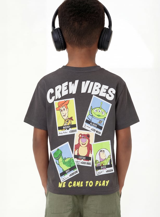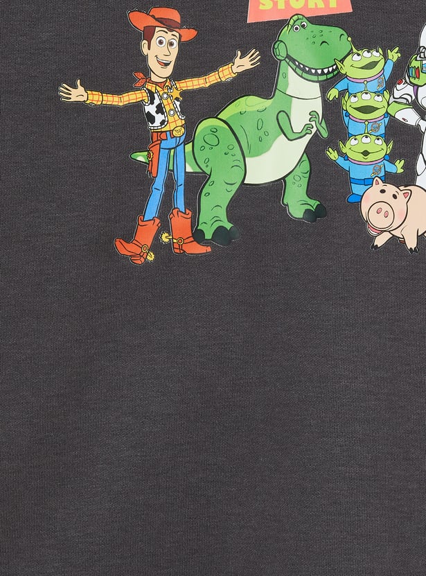 Bring adventure to his wardrobe with this crew‑neck half‑sleeve T‑shirt featuring bold Toy Story prints at the front and back. Soft and comfortable, it’s perfect for playtime, casual outings, or everyday fun with his favourite characters.