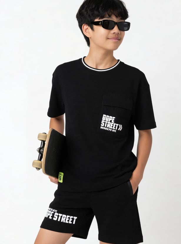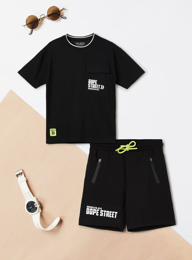 Boys Typographic Print T-shirt & Shorts Set