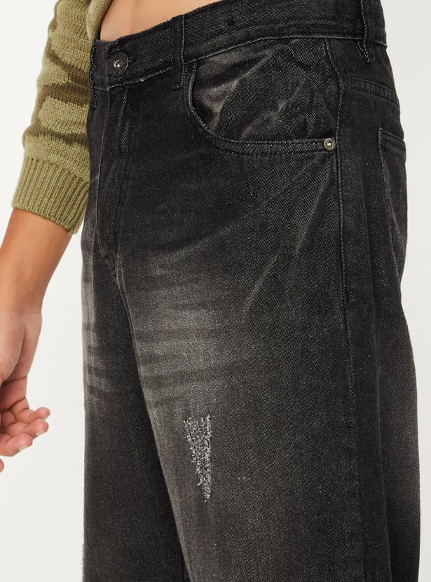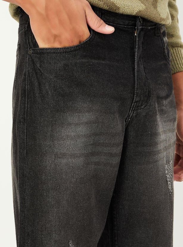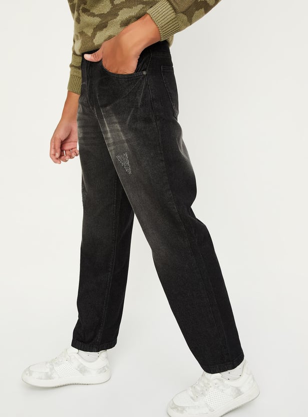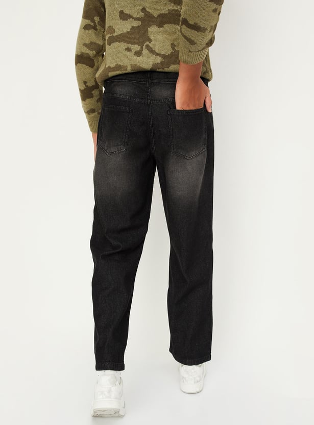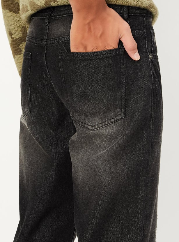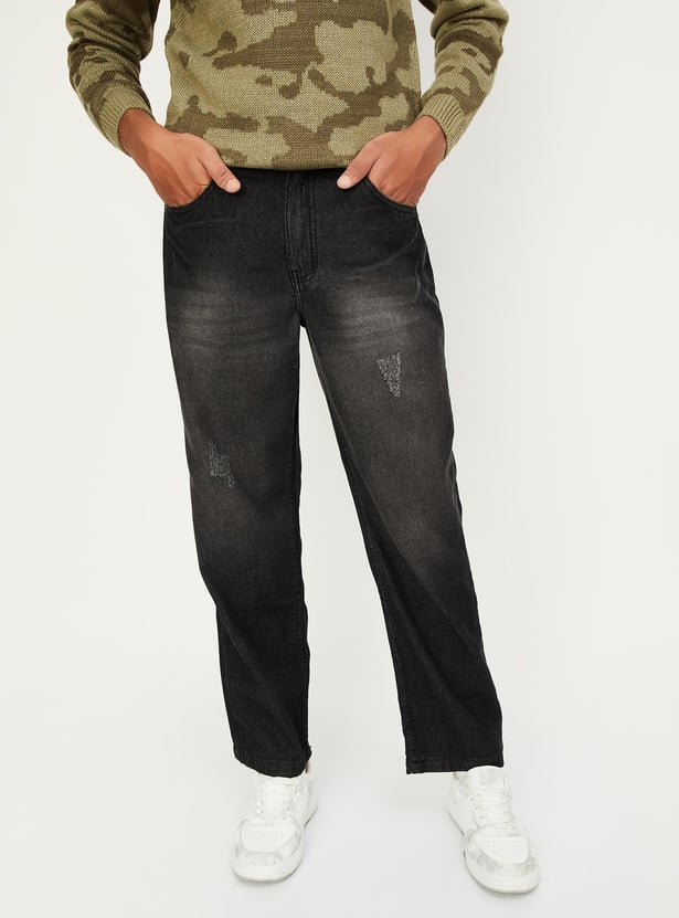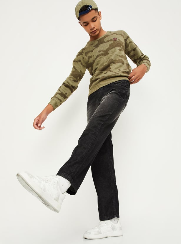 These jeans with a washed surface, belt loop waist, mild distress and 5 pockets will jazz up your kid's denim wardrobe. Style it with a printed t-shirt and sneakers for a dapper look.