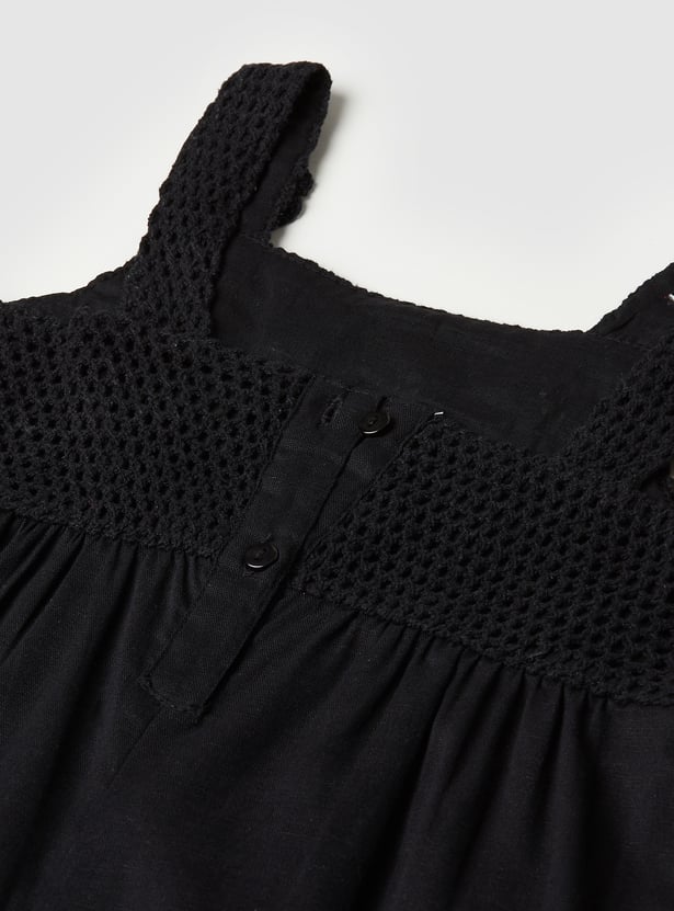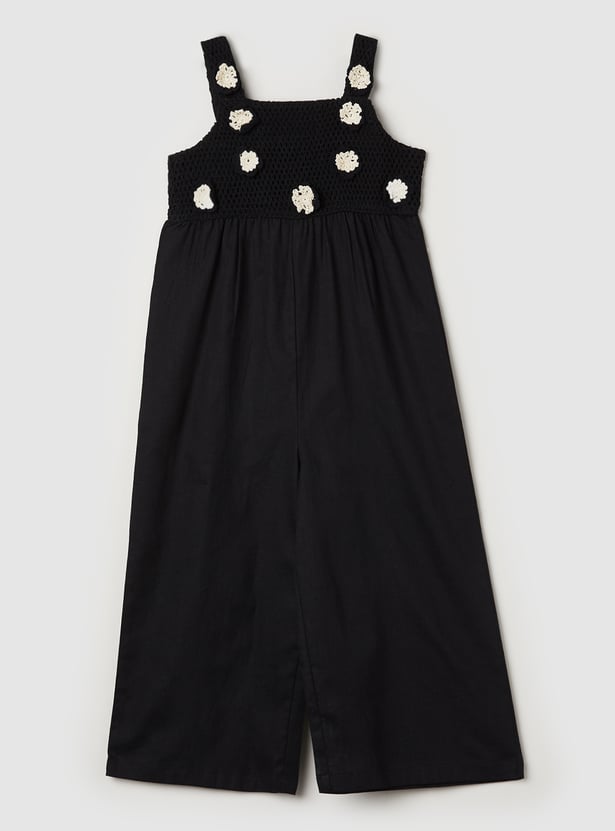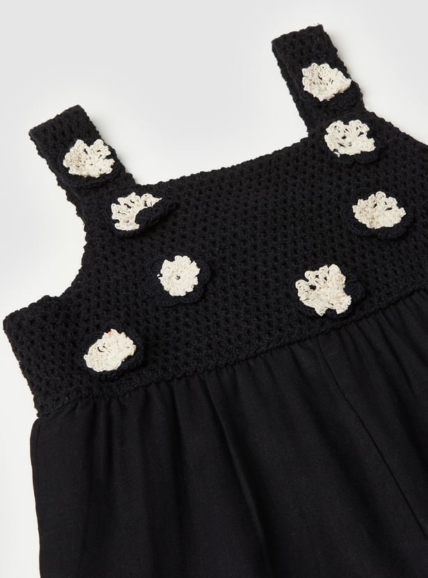 Exude effortless charm in this crochet embroidered jumpsuit, featuring intricate detailing for a stylish, boho vibe. The square neck and sleeveless design add a modern touch, perfect for warm-weather days.