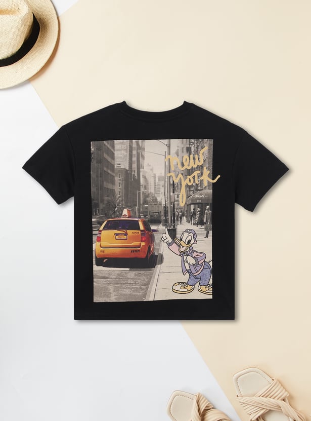 Refresh your casual lineup with this Donald Duck back graphic print T-shirt featuring a classic round neck and a comfortable, easy fit.