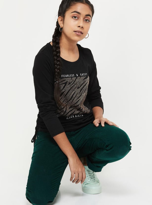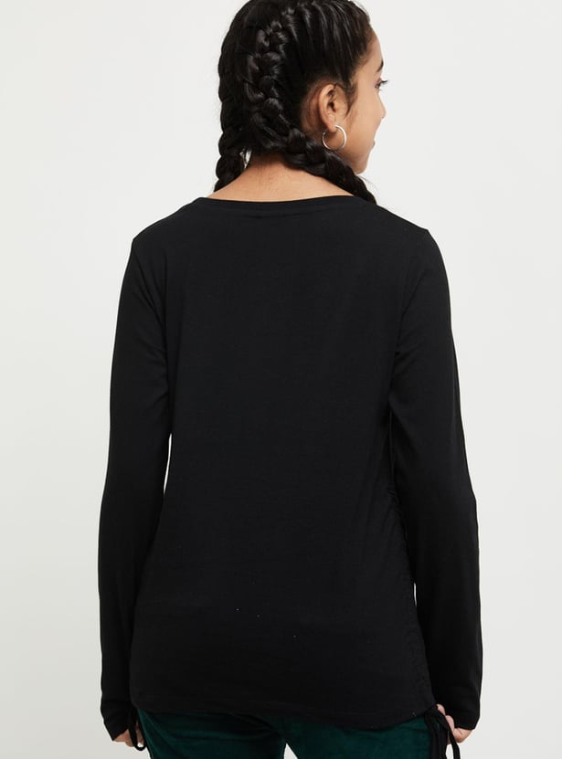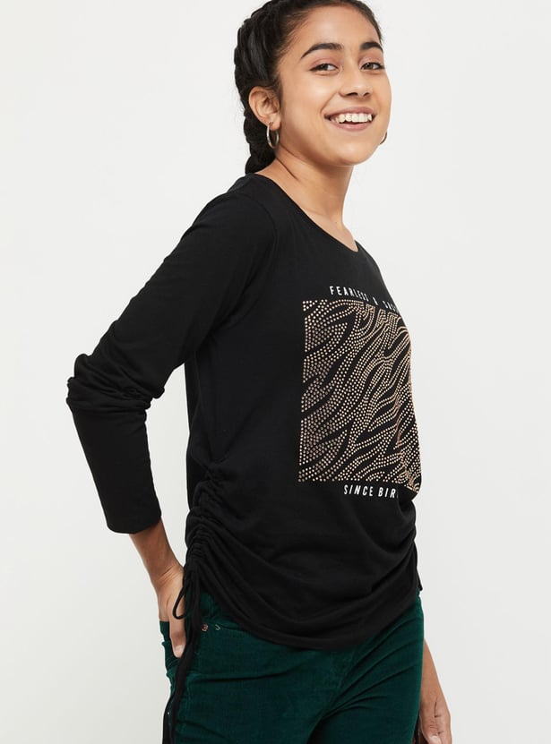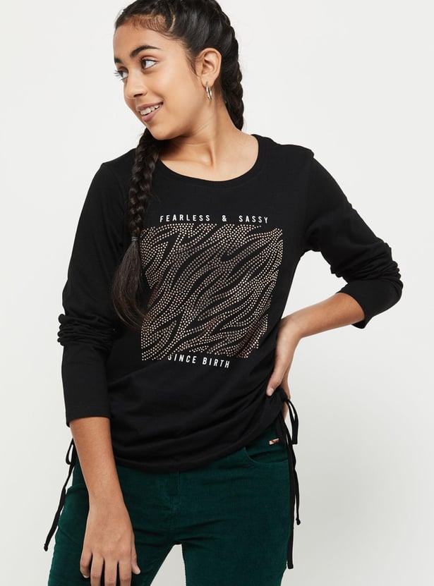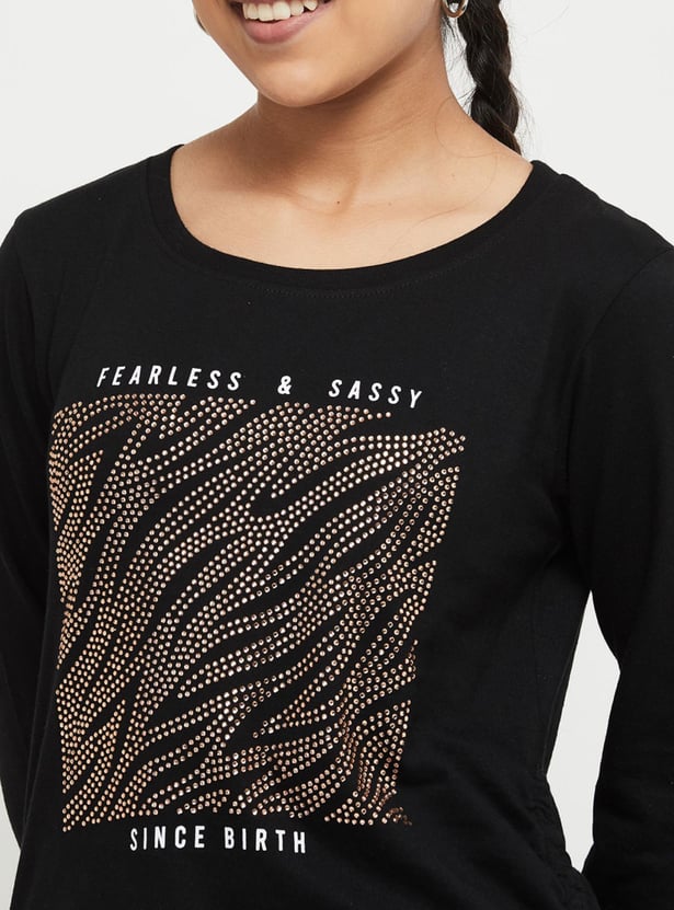 Girls Embellished Full Sleeves Round Neck T-shirt