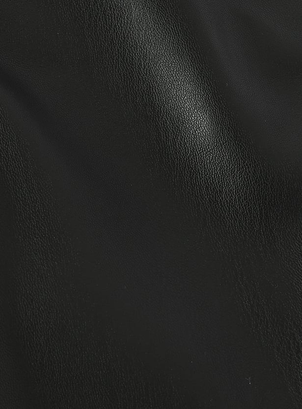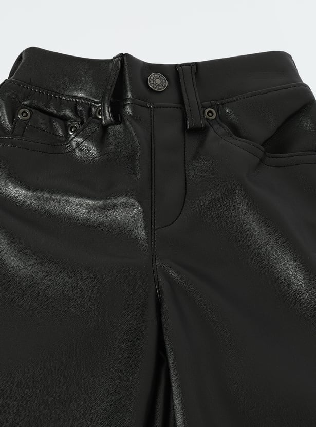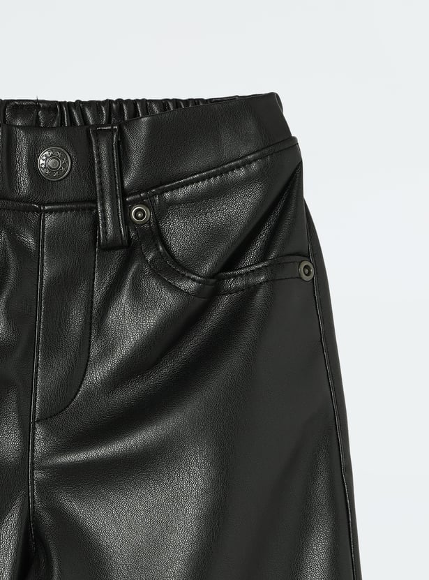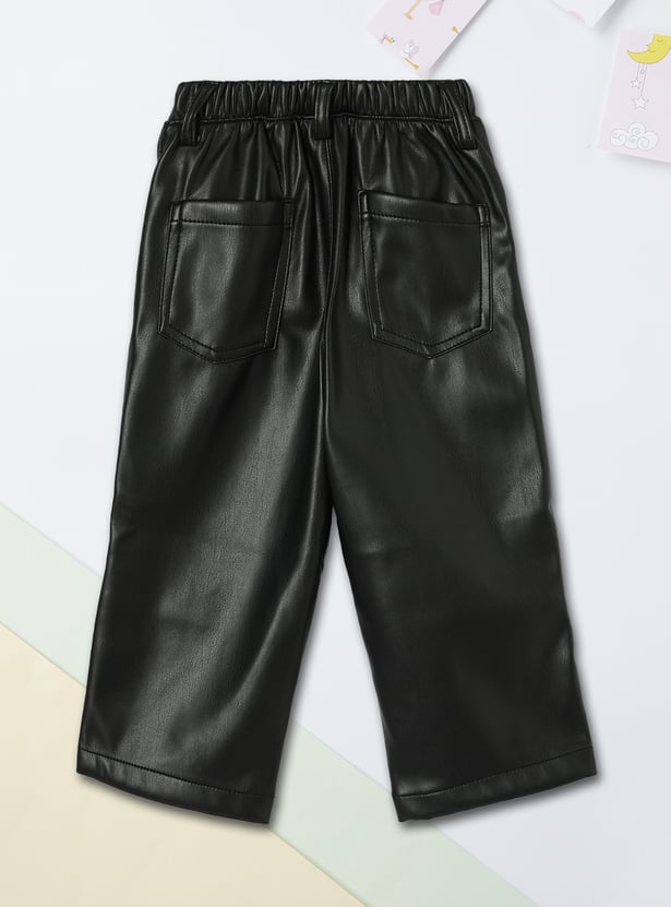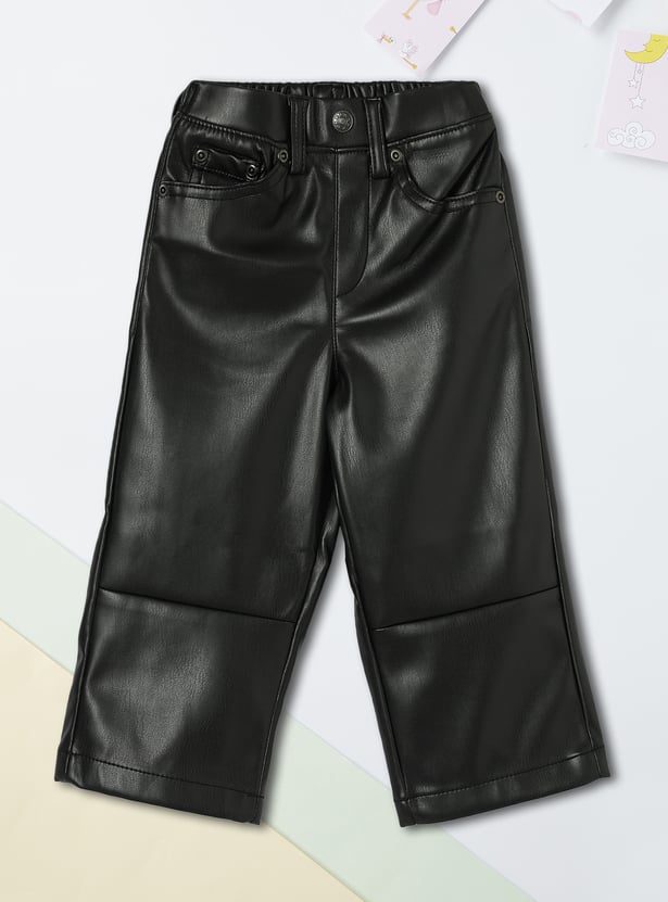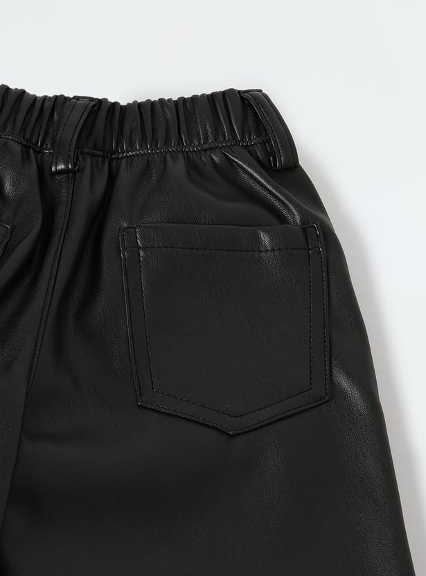 Bring some bold, edgy style to her wardrobe with this pair of trousers. Featuring a partially elasticated waist for a comfortable and adjustable fit, this pair are as practical as they are trendy. The five functional pockets offer plenty of space to store essentials, while the sleek panels on the legs add a touch of modern edge. The faux leather look gives a chic, trendy vibe.
