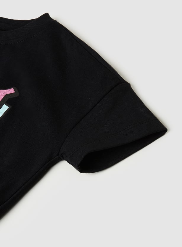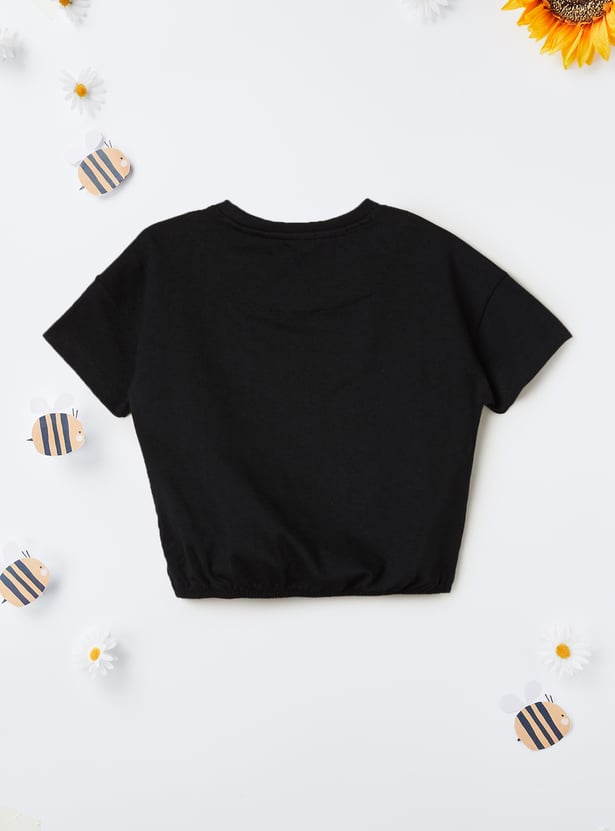 This Hello Kitty printed top features an adorable design with a round neck and half sleeves for a comfy, cute look. The elasticated hem adds a playful touch while ensuring a perfect fit.