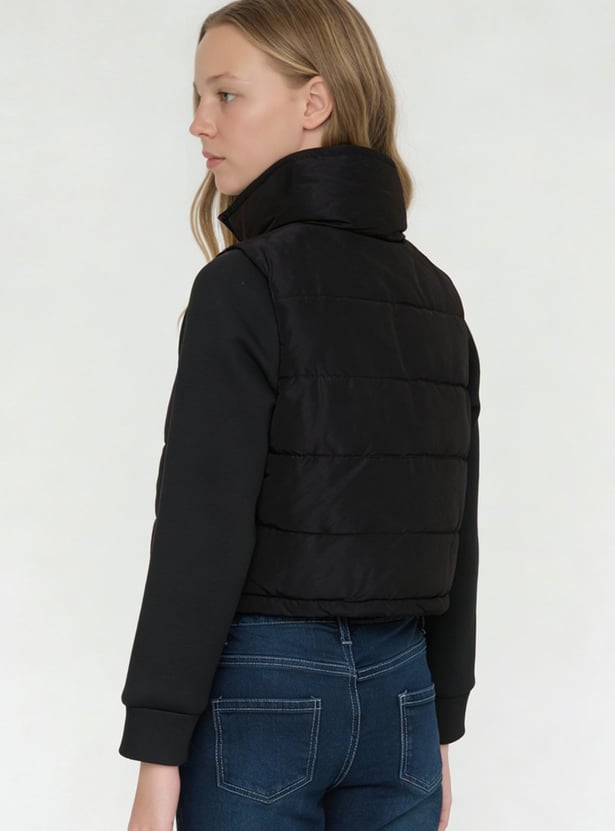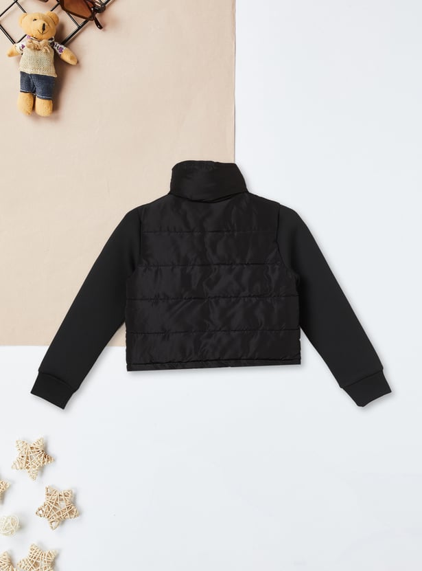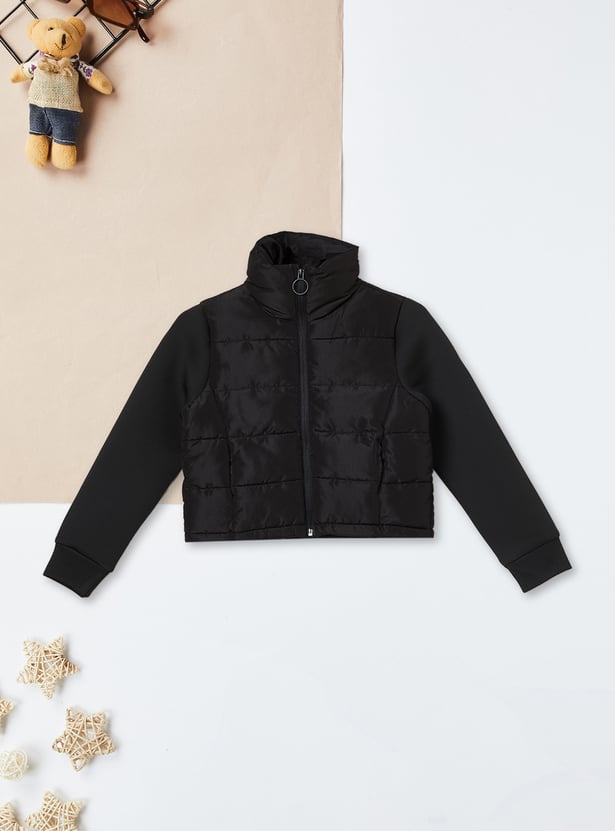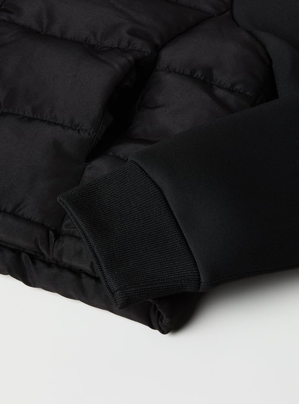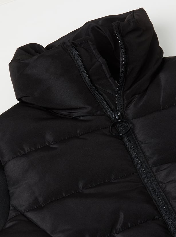 Stay warm and stylish with this puffer jacket. Featuring a secure zip closure, full sleeves, and a high neck design, it offers maximum comfort and protection against the cold. The quilted finish adds a classic touch to this winter essential.