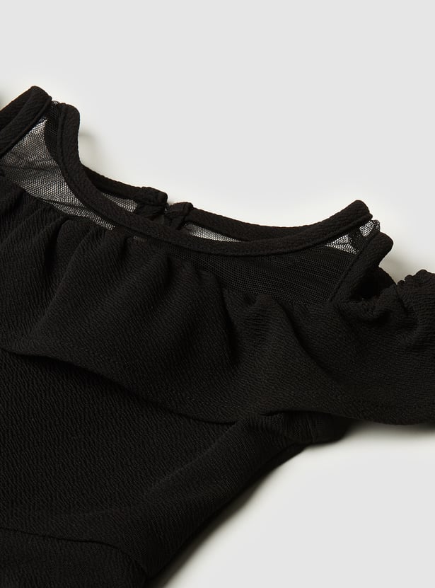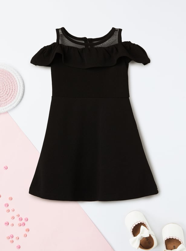 Girls Illusion Neck Cold Shoulder A-line Dress
