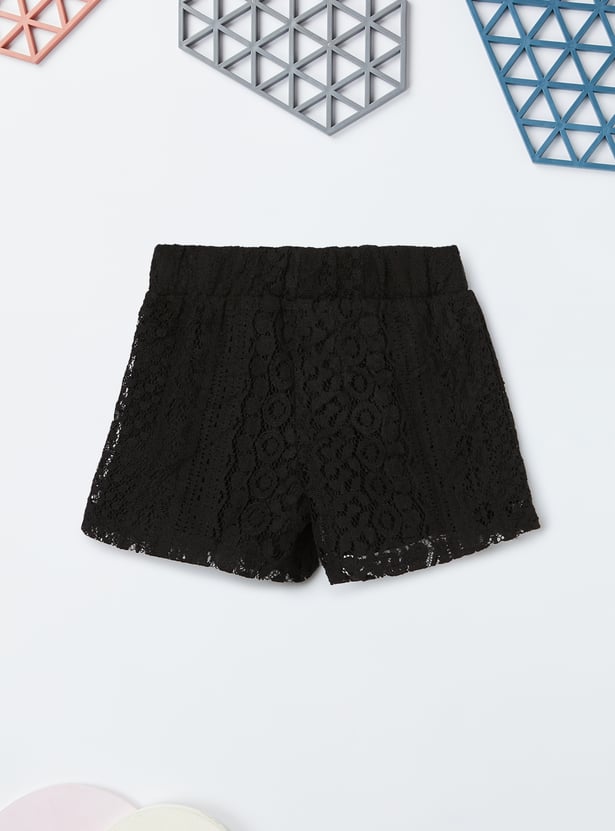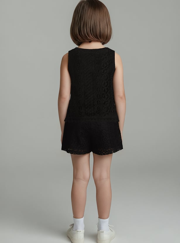 Girls Lace Embroidered Shorts Set