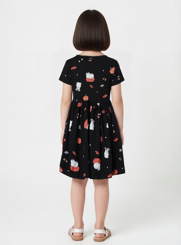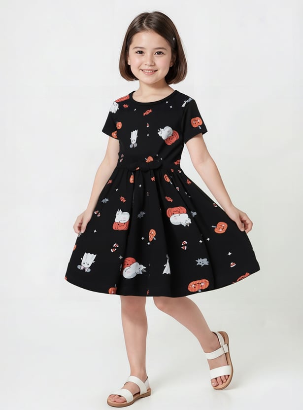 Let your little one twirl in style with this printed A-line dress! Featuring a round neck, half sleeves, and a flared skirt, it's the perfect combination of fun, comfort, and flair.