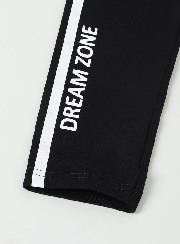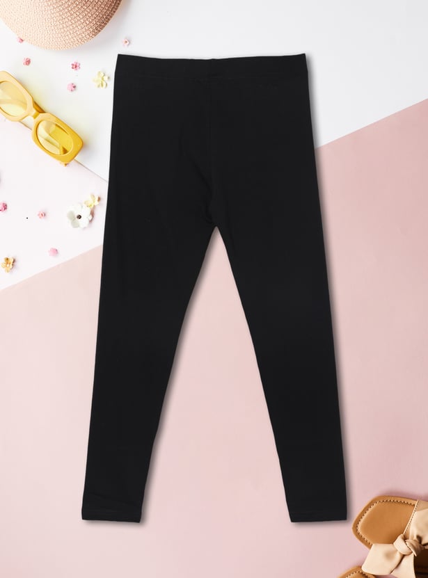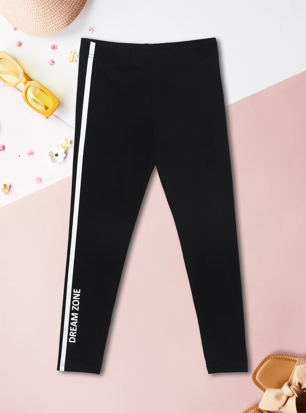 These girls’ full-length printed leggings feature a minimal print on the side and an elasticated waistband for a comfortable, secure fit. Perfect for everyday wear, they offer ease of movement and sporty style.