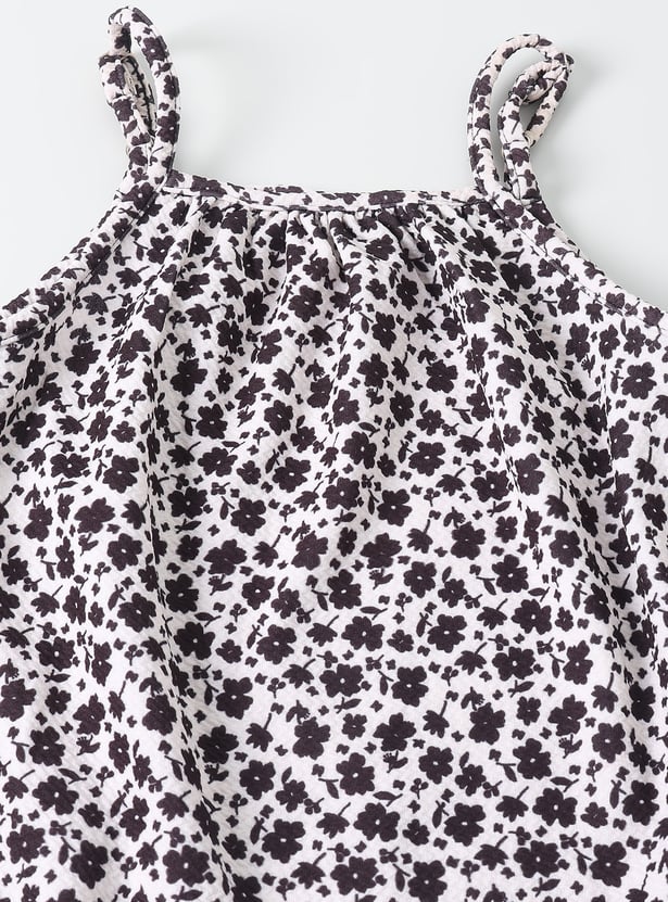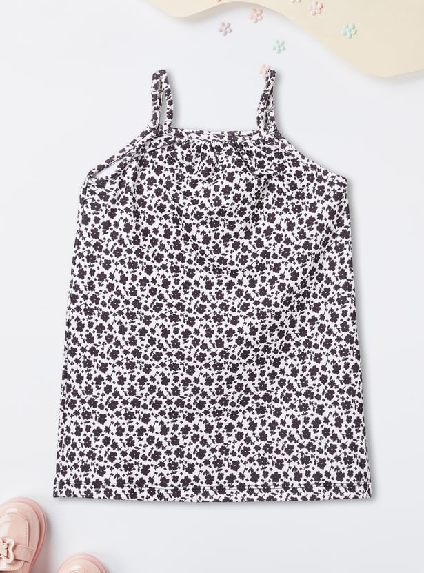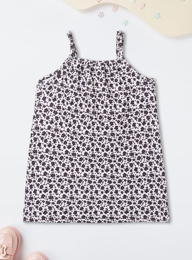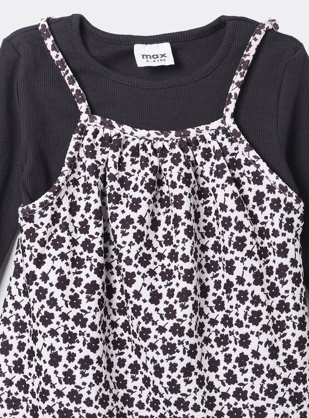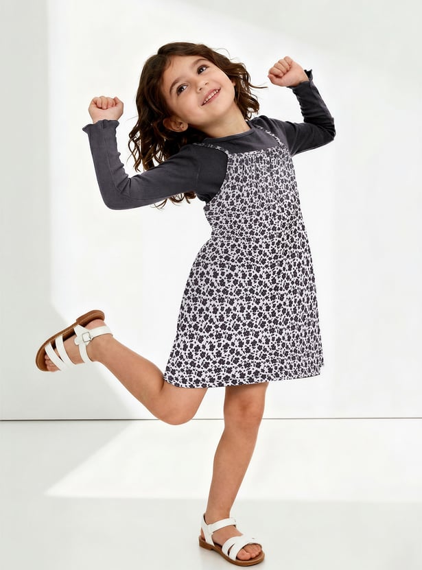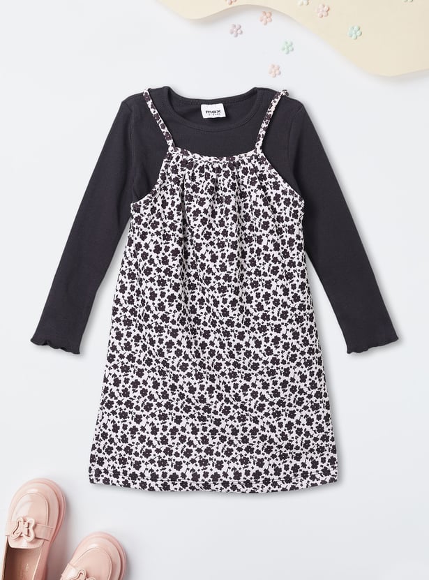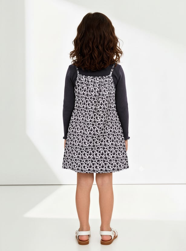 Girls Printed Pinafore Dress with T-shirt