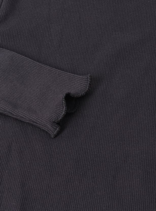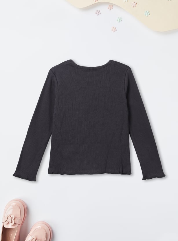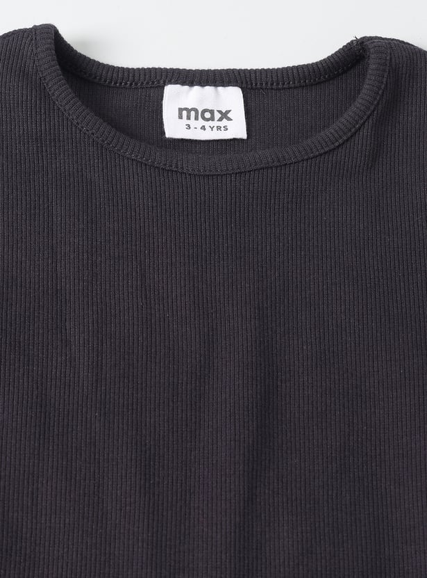 This girls’ outfit set features a printed knee-length pinafore dress with spaghetti straps and a square neckline, paired with a solid full-sleeve round neck T-shirt. The coordinated look blends playful prints with classic layering for all-day comfort and charm.