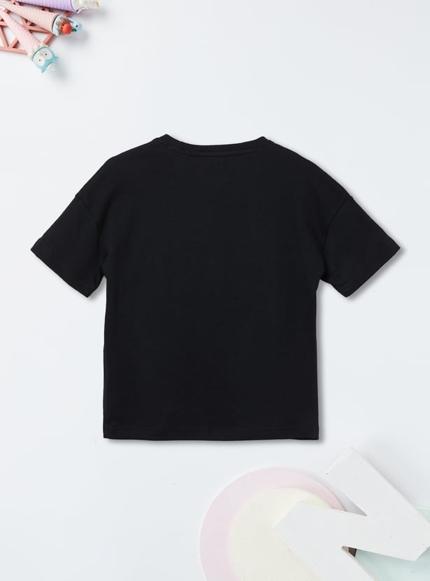 Keep it cool and casual with this printed shorts set, featuring a round-neck, half-sleeve T-shirt paired with matching shorts with a drawstring closure for a comfy fit.