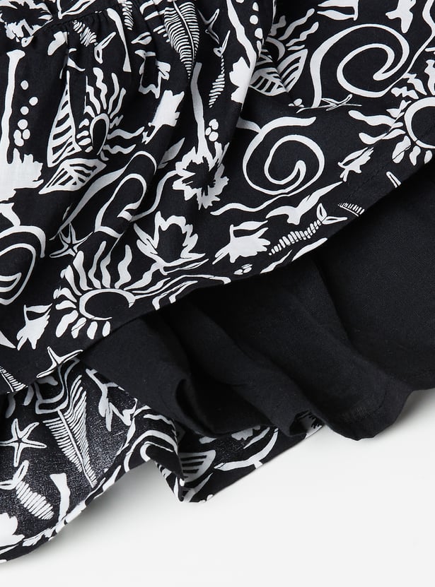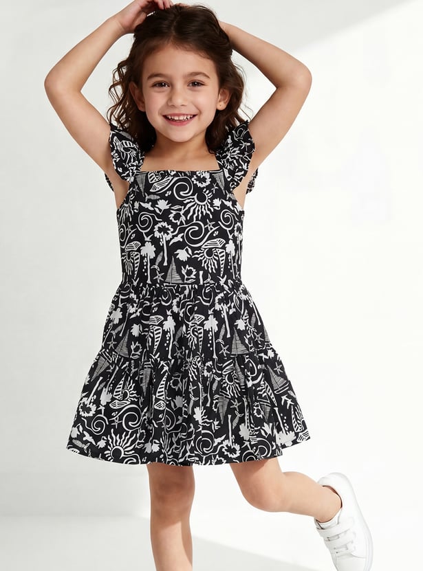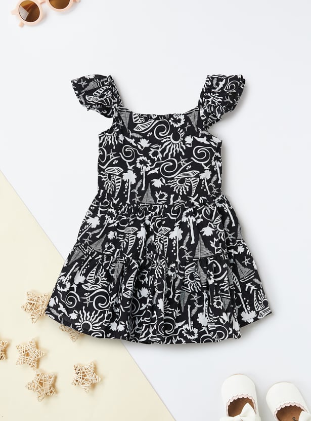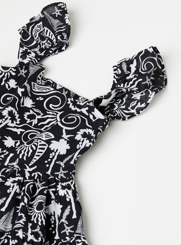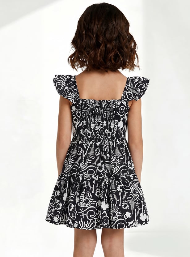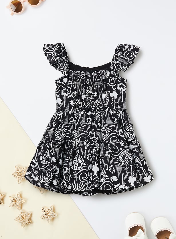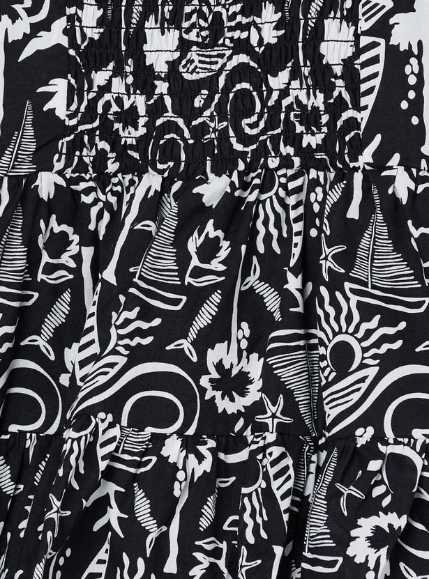 Playful and feminine, this printed smocked dress features a square neckline and half sleeves. The smocked detailing offers a flattering fit, while the printed design adds charm and personality to the breezy silhouette.