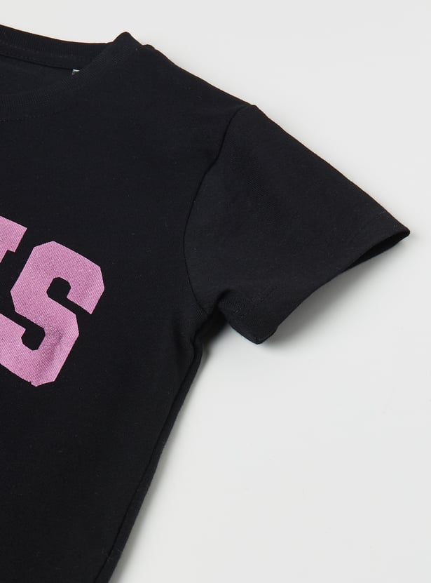 Add a playful touch to your everyday wardrobe with this printed T-shirt, designed with a classic round neck and half sleeves for easy, relaxed comfort.