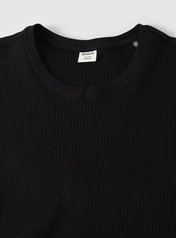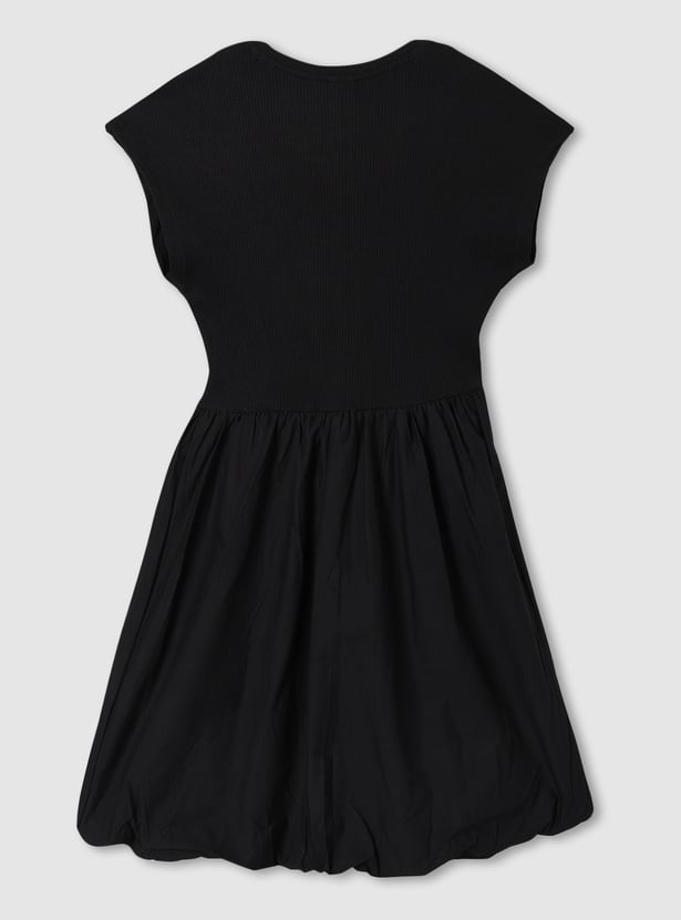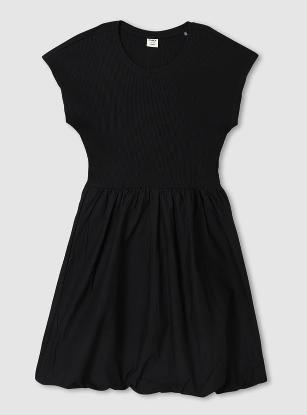 Step into effortless style with this ribbed fit and flare dress. Featuring a classic round neck and half sleeves, the dress flares beautifully at the hem for a flattering silhouette. Perfect for any occasion, it combines comfort with chic, modern elegance.