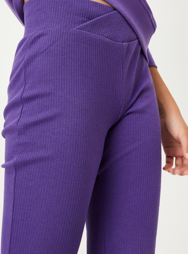 Boost her sense of style with these trousers updated with a ribbed pattern. It features an elasticated waist and a full-length profile. A tee and sneakers with these trousers take her style to new heights.