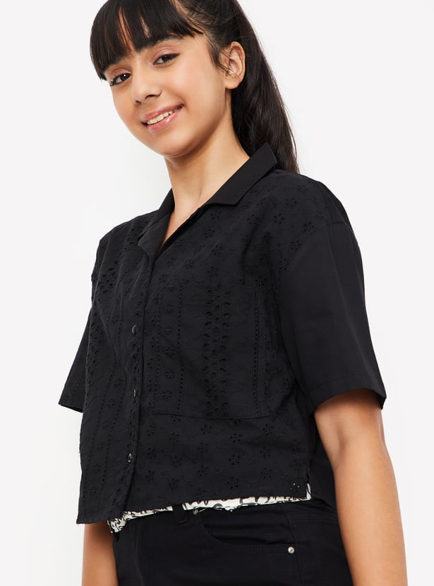Girls Sciffili Embroidered Boxy Fit Crop Shirt