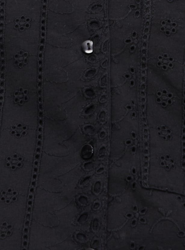 Elevate your style with the sciffili embroidered boxy fit crop shirt. Featuring a resort collar, half sleeves, and a button placket, this shirt combines a relaxed, boxy fit with intricate embroidery for a chic, breezy vibe.