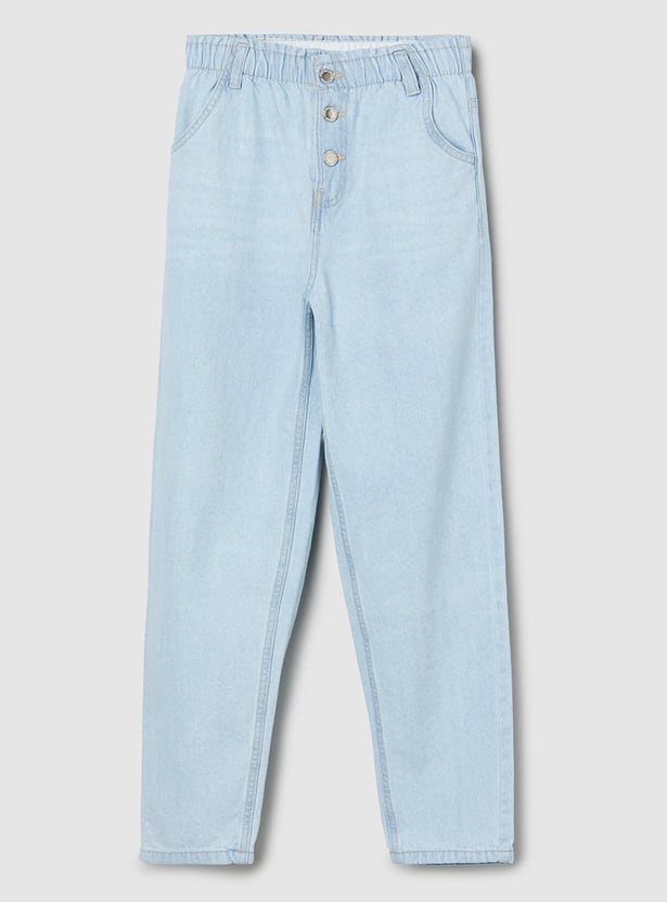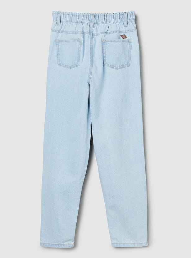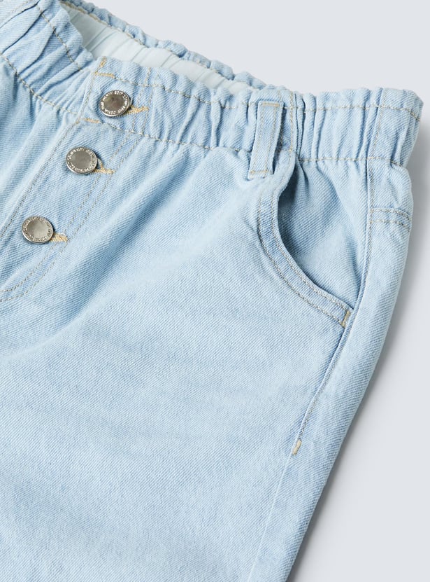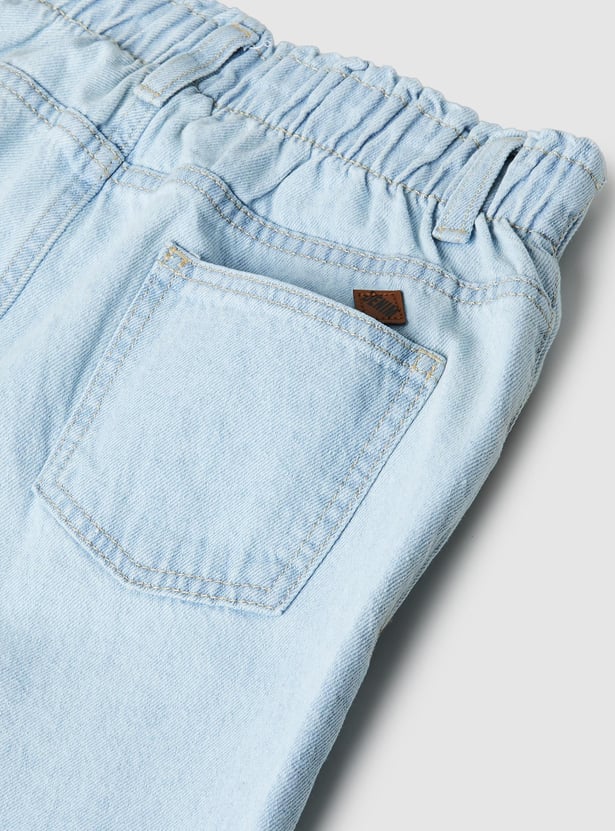 Your kid will love the classic denim fit of these jeans. With a solid tone finish, paper bag waist featuring belt loops, button placket, four pockets, and a slim-fit profile, they're both stylish and comfortable.