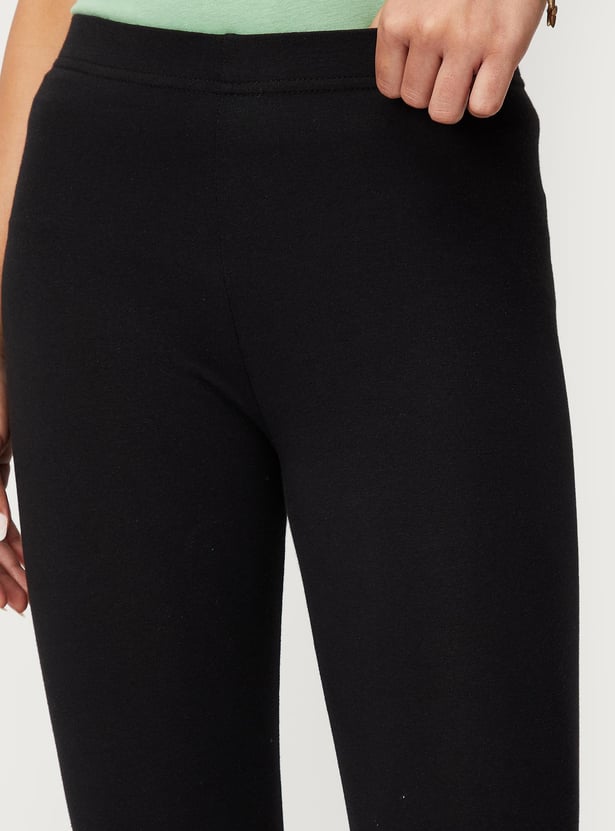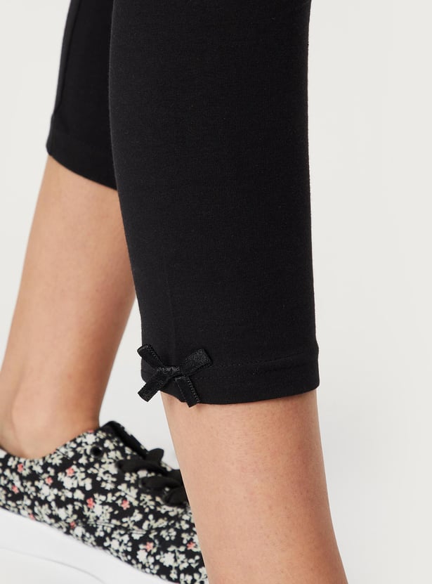 Let your child stay comfortable and stylish all day with this pair of leggings. It is designed with a solid surface, an elasticated waistline, and a 3/4th length construction. Team this pair of leggings with a top and lace-up shoes to give your child a chic look.