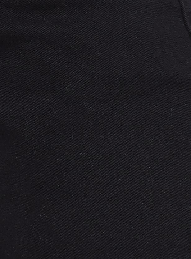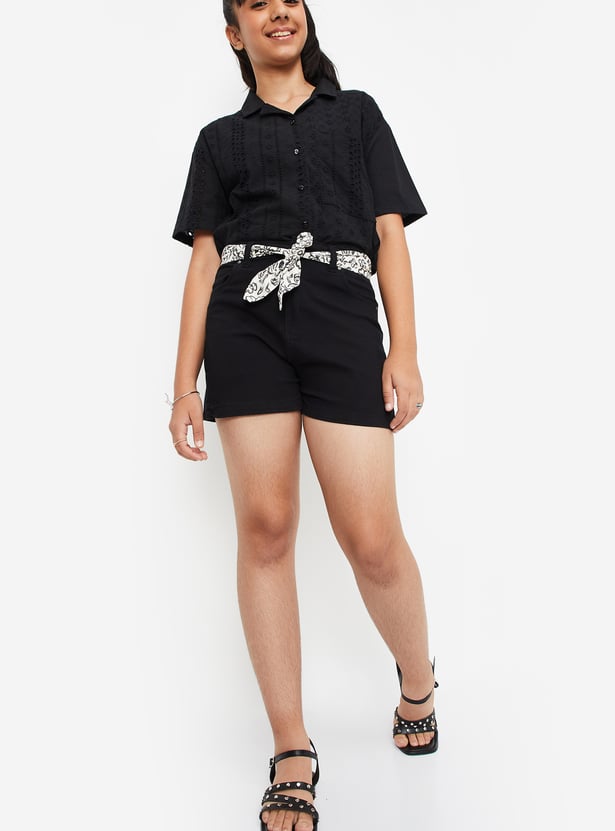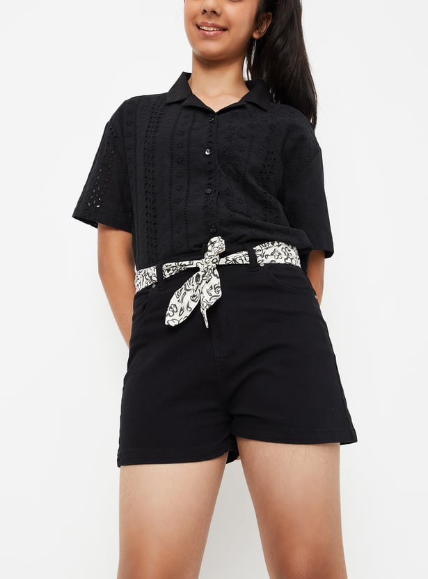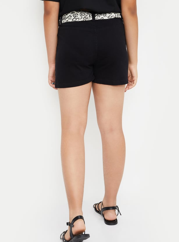 Girls Solid Belted Denim Shorts