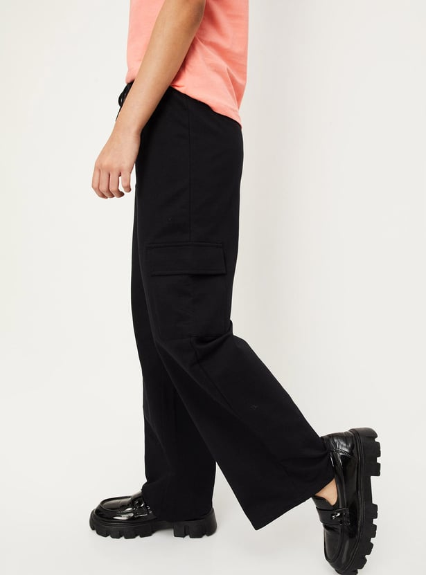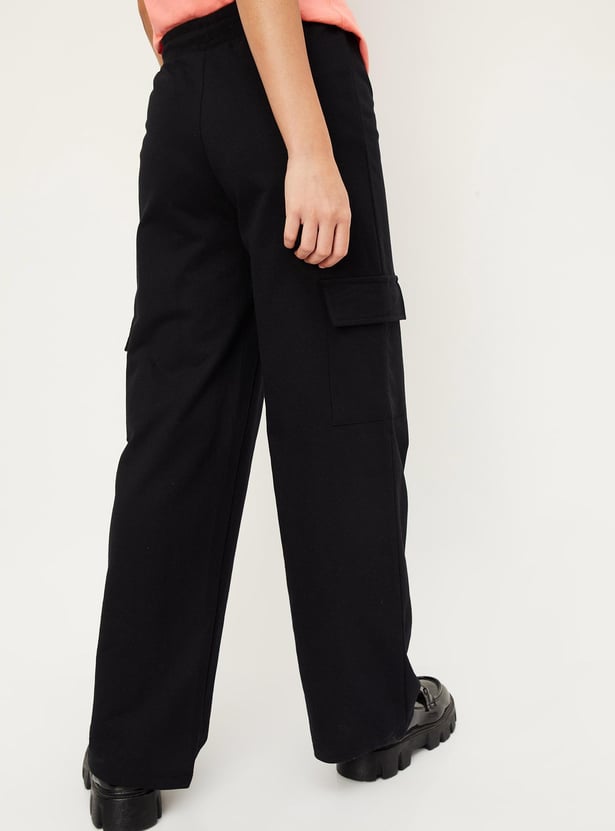 Girls Solid Cargo Trousers
