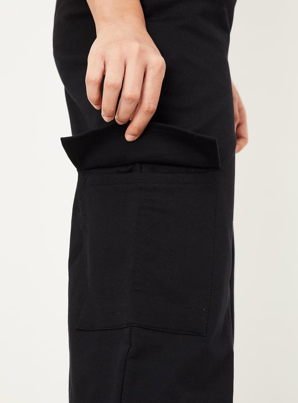 Embrace the laidback style with this pair of trousers. Rendered in a solid tone, it has a drawstring waist, side cargo pockets, and a wide-leg profile.