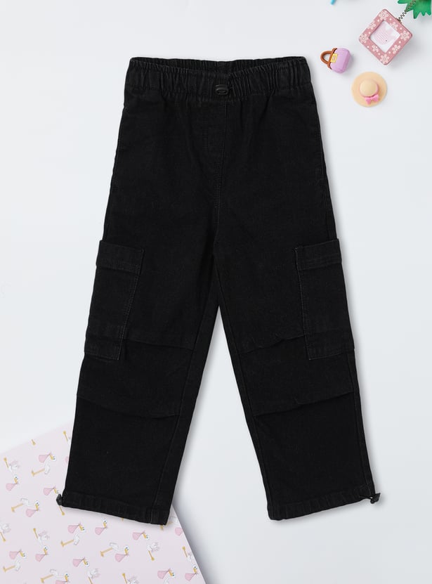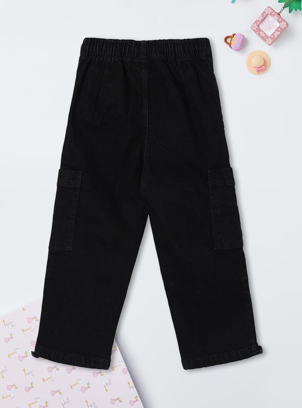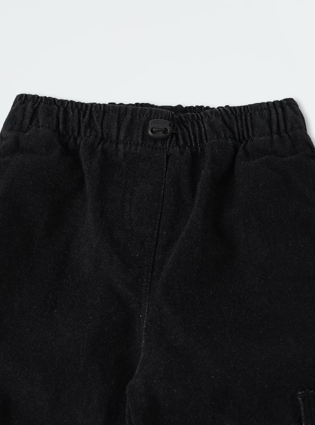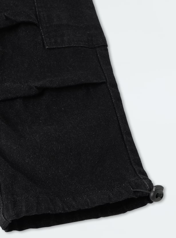 Upgrade your casual style with these solid slim fit mid-rise cargo jeans, featuring an elasticated waist for a comfortable, adjustable fit. The cargo pockets add both practicality and a trendy touch.