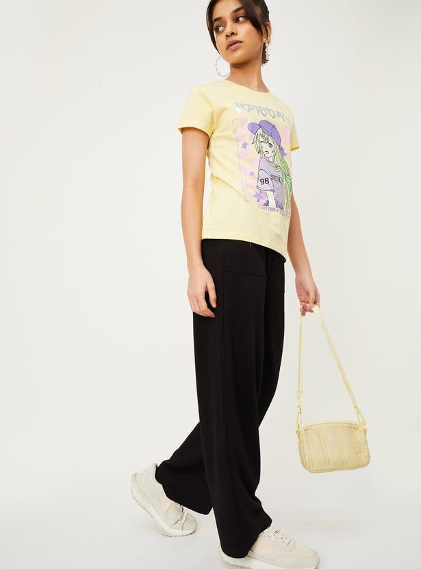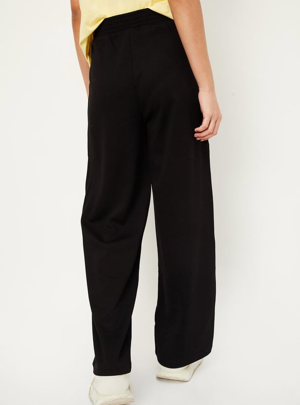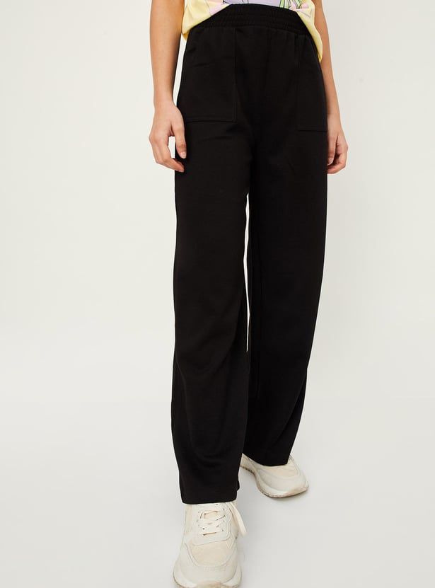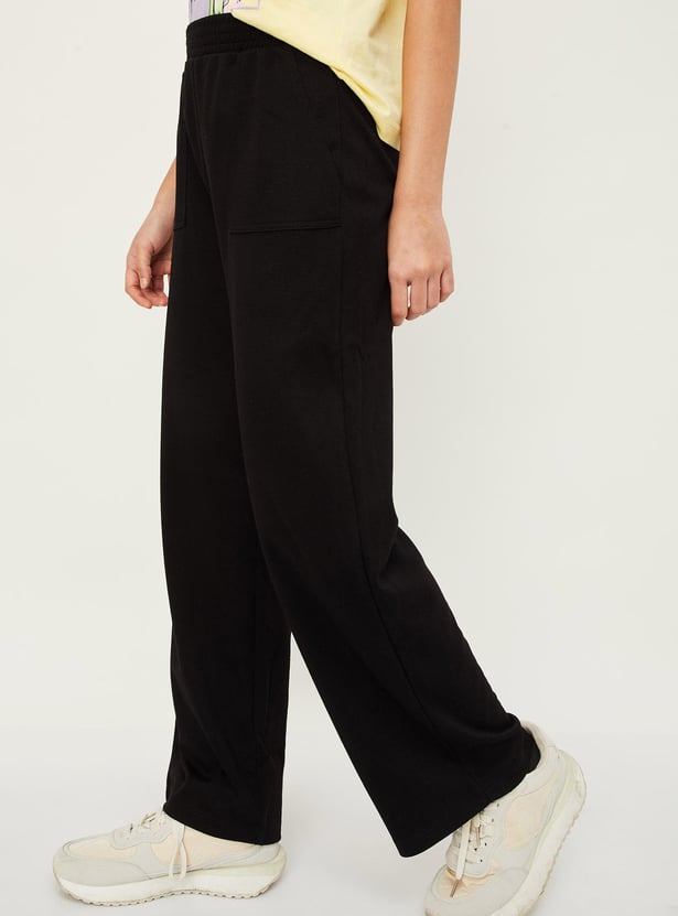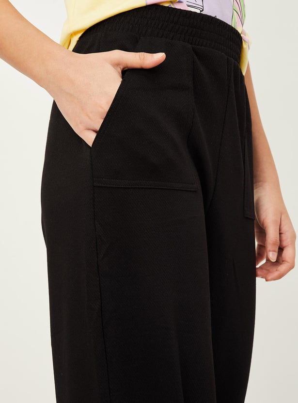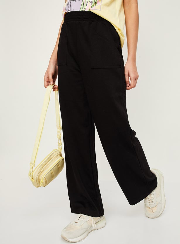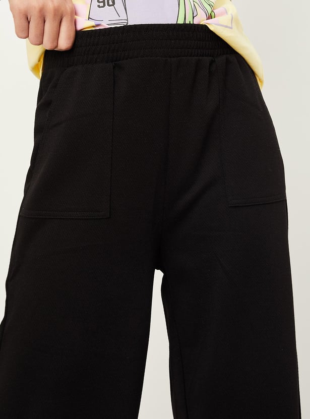 Embrace the laidback style with this pair of trousers. Rendered in a solid tone, it has an elasticated waist, cross pockets, and a wide-leg profile.